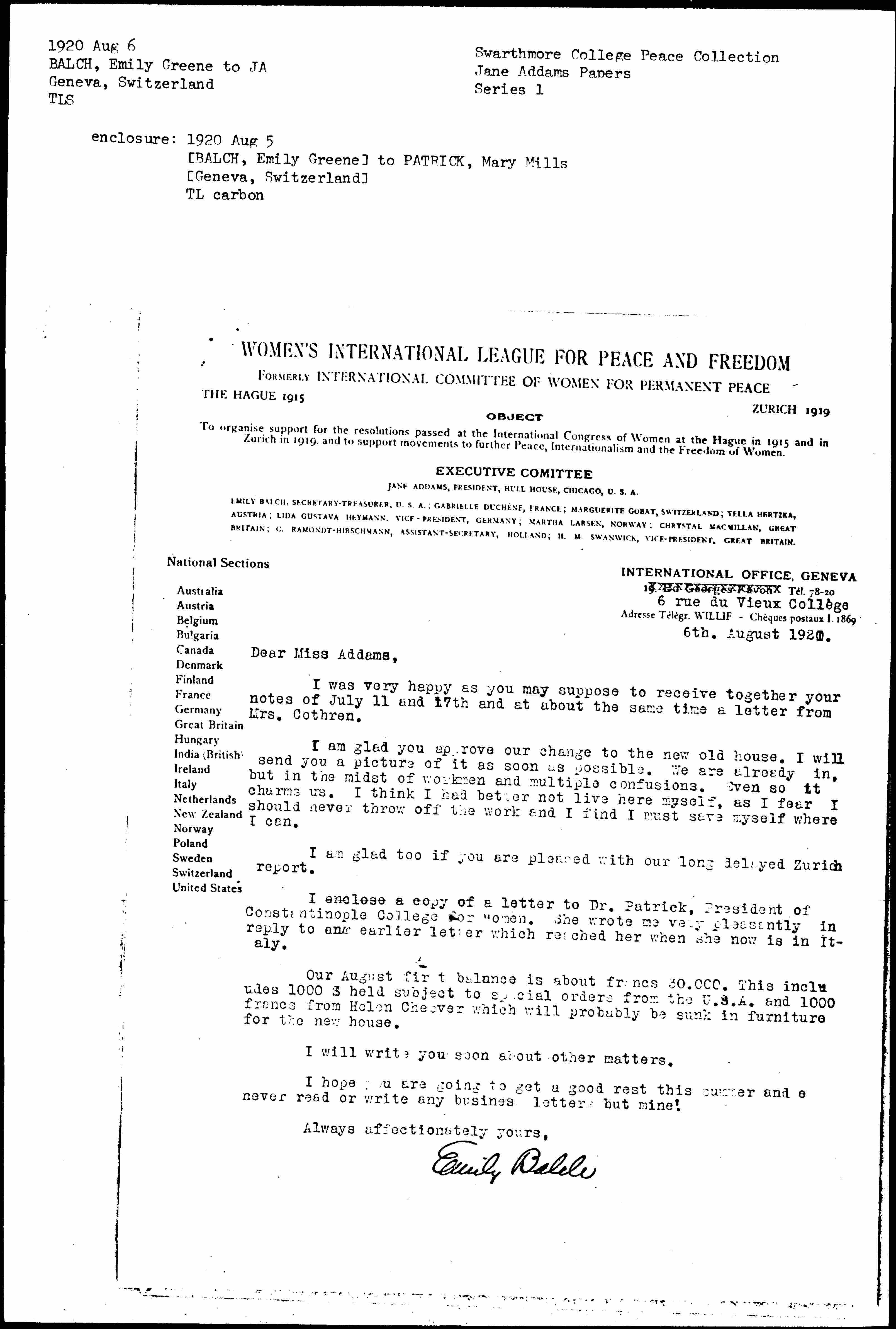 I enclose a copy of a letter to Dr. Patrick, President of Constantinople College for Women. She wrote me very pleasantly in reply to an earlier letter which reached her when she now is in Italy.
