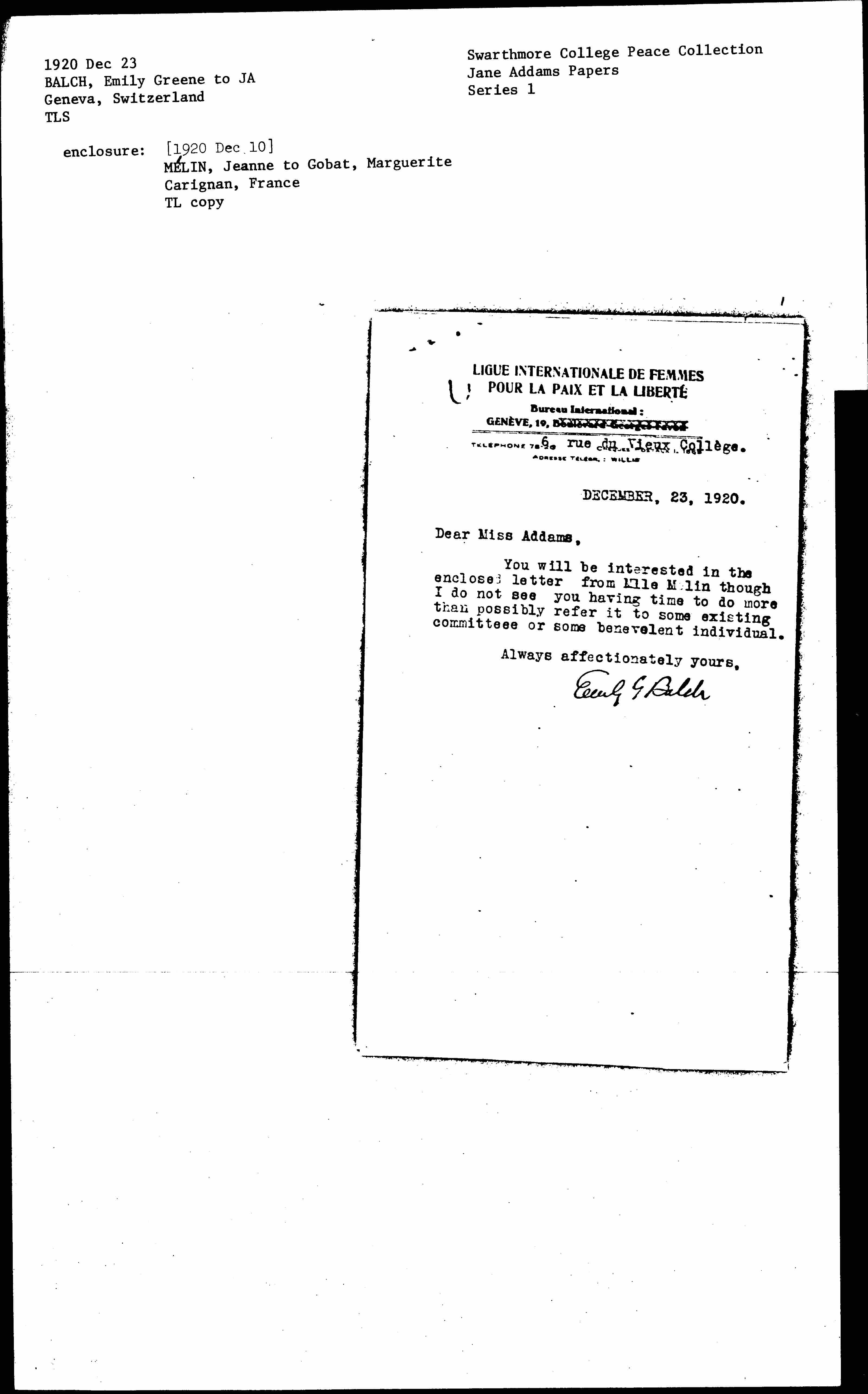 You will be interested in the enclosed letter from Mlle [Mélin] though I do not see you having time to do more than possibly refer it to some existing committee or some benevolent individual.
