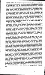 We also urged a new peace hoping finally to secure absolute disarmament, which, of course, cannot be brought about while there is a sense of fear and suspicion on one side and on the other side a sense of injury and grievance. Disarmament can only rest upon a sense of justice and security. If the Ruhr is occupied, as it now threatens to be, it will not only throw Europe into war but if the troops march before an impartial body decides whether or not the defaults of payment have been [willful] it will mean that disarmament itself will receive a great blow. To invade any unarmed nation without all possible legal safeguards is certainly a very serious matter (applause).