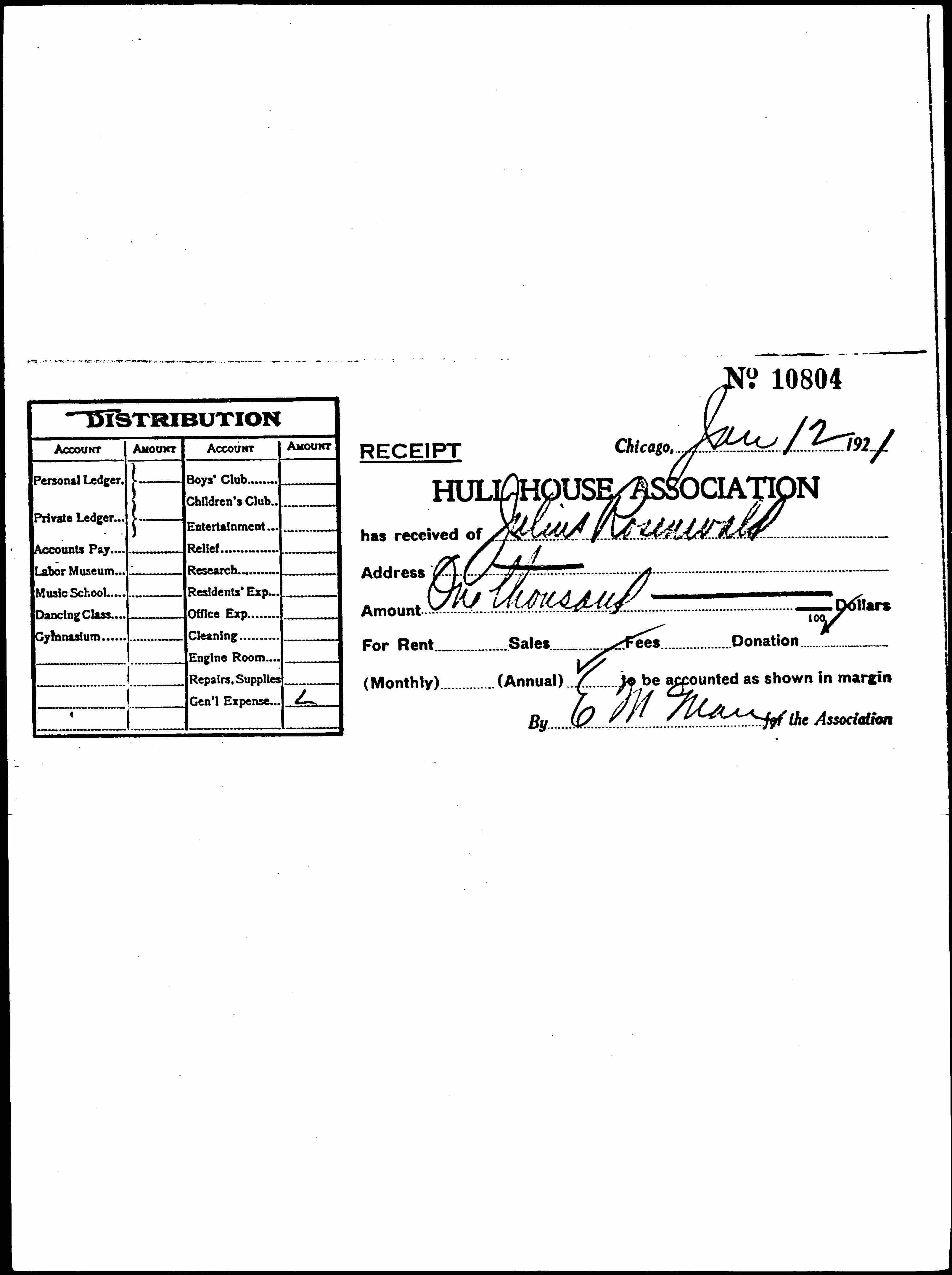 RECEIPTChicago, ↑Jan 12 1921↓