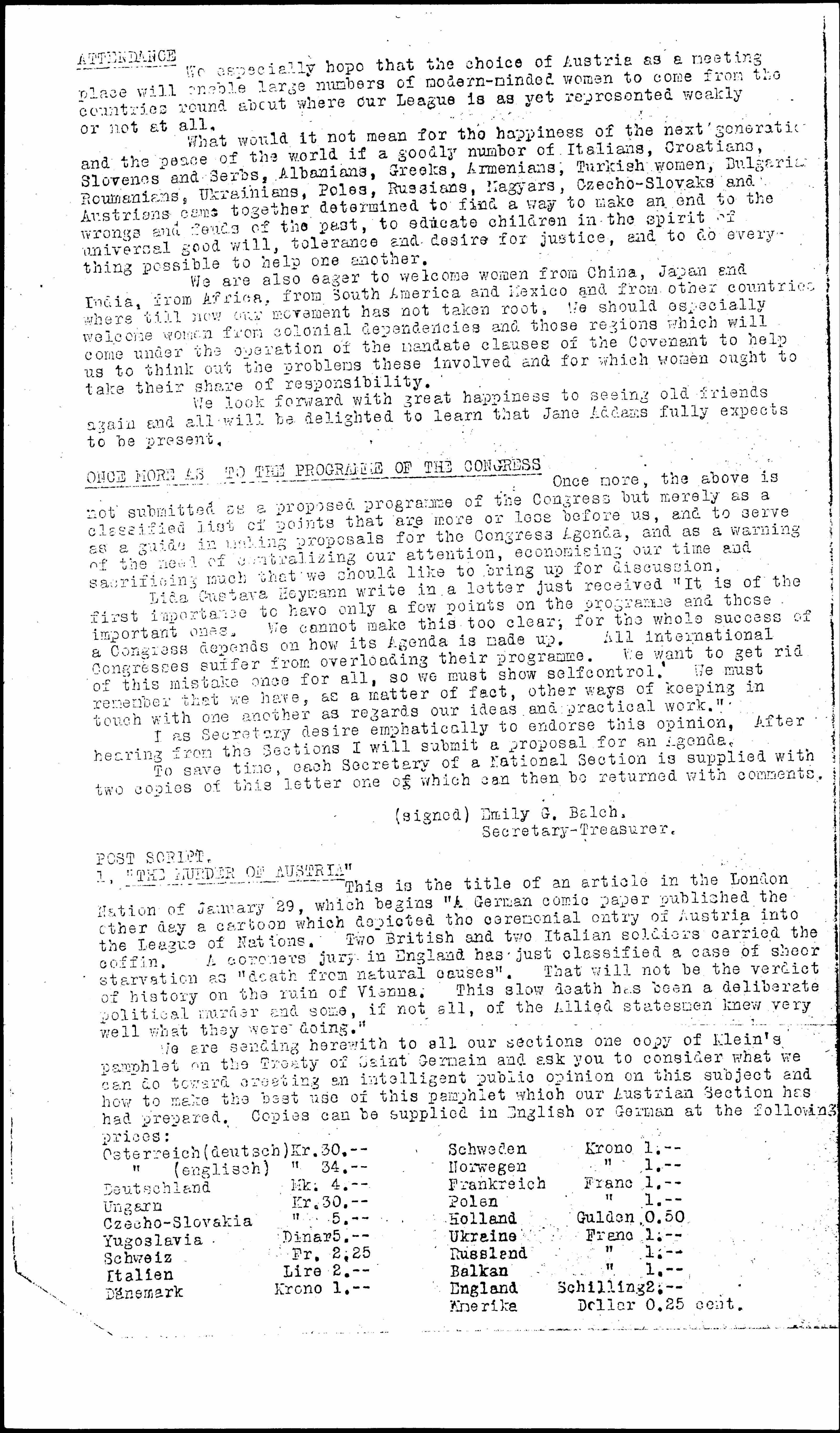 We especially hope that the choice of Austria as a meeting place will enable large numbers of modern-minded women to come from the countries round about where our League is as yet represented weakly or not at all.