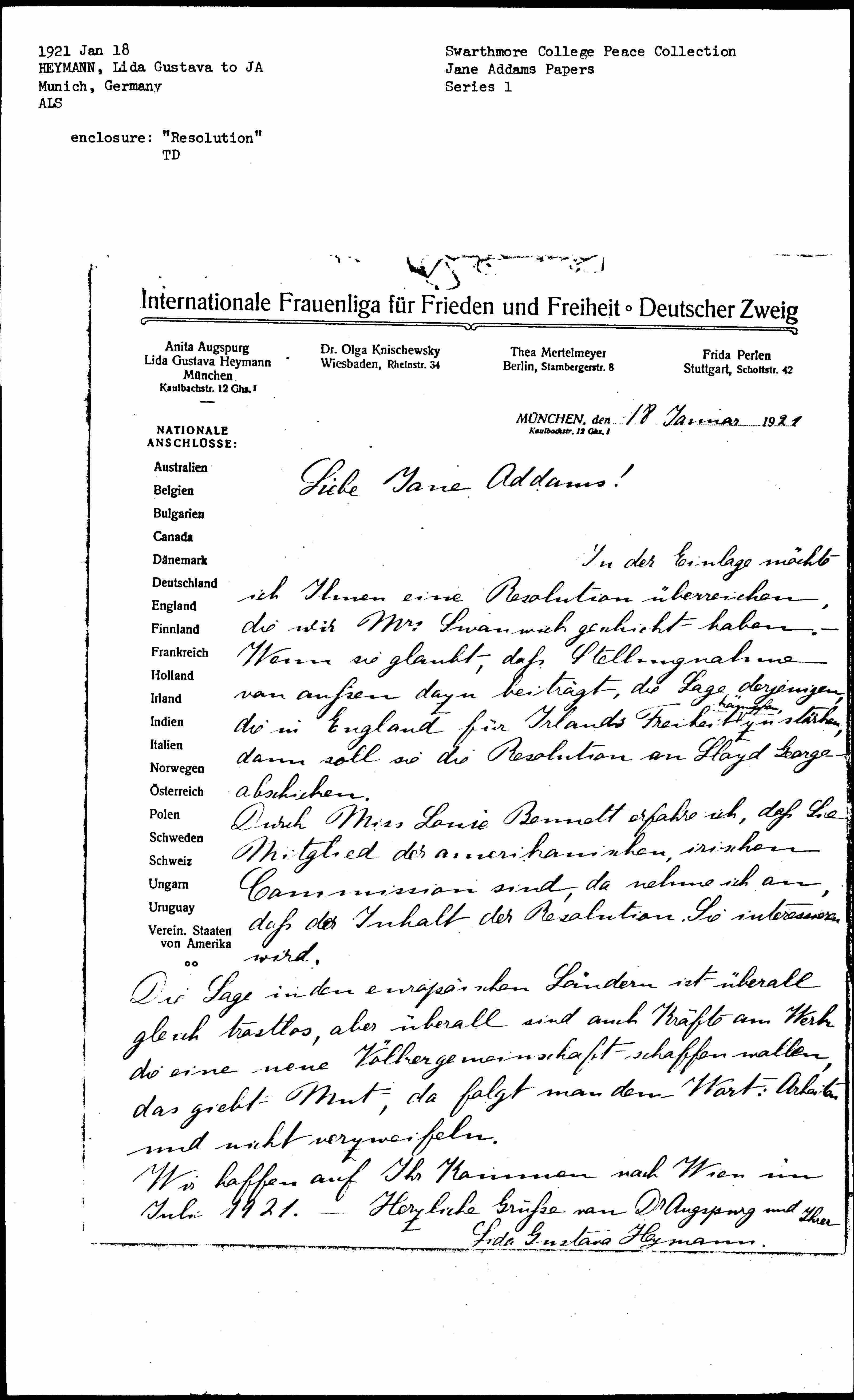 Kind regards from Dr. Augspurgand your Lida Gustava Heymann.