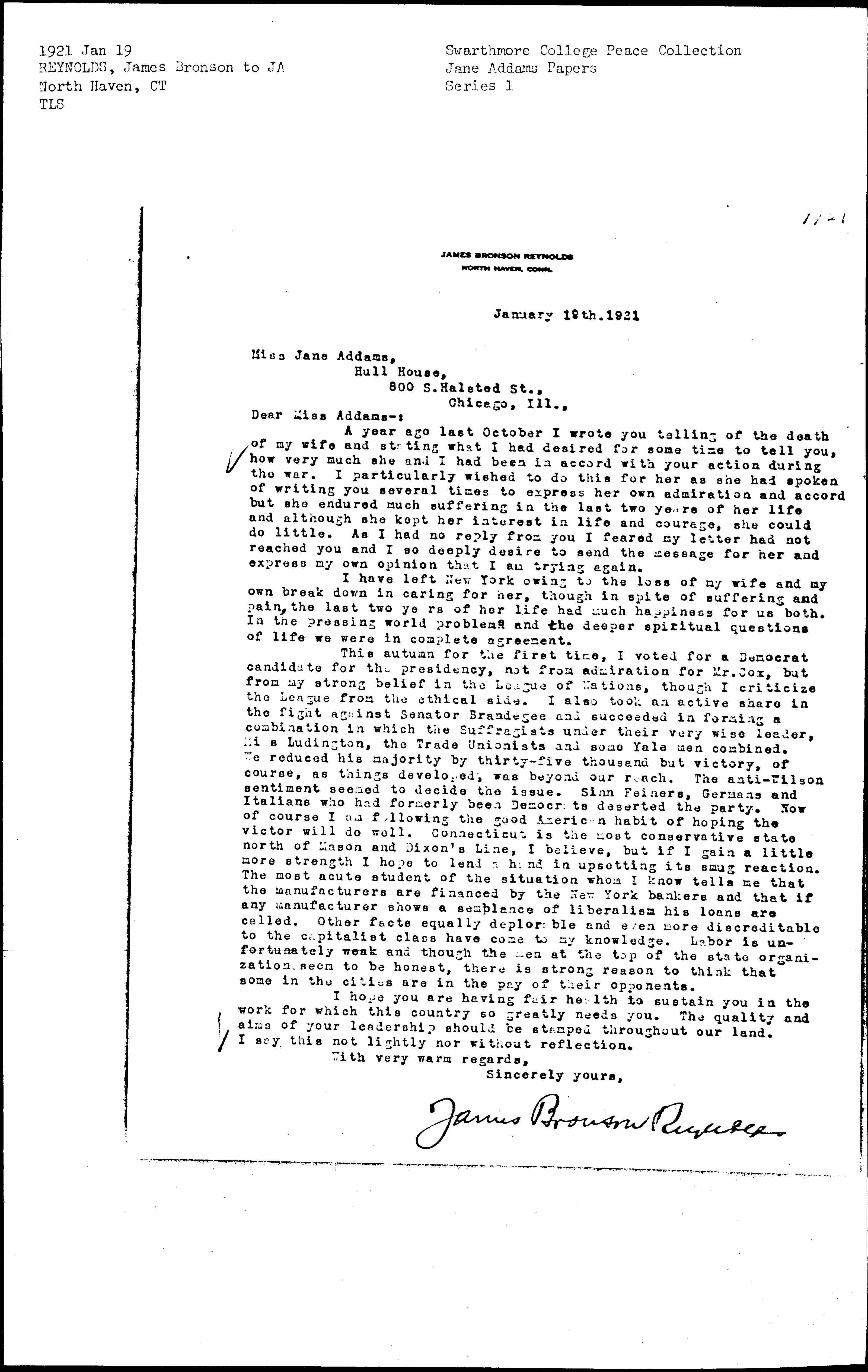 This autumn for the first time, I voted for a Democrat candidate for the presidency, not from admiration for Mr. Cox, but from my strong belief in the League of Nations, though I criticize the League from the ethical side. I also took an active share in the fight against Senator Brandegee and succeeded in forming a combination in which the Suffragists under their very wise leader, Miss Ludington, the Trade Unionists and some Yale men combined. We reduced his majority by thirty-five thousand but victory, of course, as things developed, was beyond our reach. The anti-Wilson sentiment seemed to decide the issue. Sinn Féiners, Germans and Italians who had formerly been Democrats deserted the party. Now of course I am following the good American habit of hoping the victor will do well. Connecticut is the most conservative state north of Mason and Dixon's Line, I believe, but if I gain a little more strength I hope to lend a hand in upsetting its smug reaction. The most acute student of the situation whom I know tells me that the manufactures are financed by the New York bankers and that if any manufacturer shows a semblance of liberalism his loans are called. Other facts equally deplorable and even more discreditable to the capitalist class have come to my knowledge. Labor is unfortunately weak and though the men at the top of the state organization seem to be honest, there is strong reason to think that some in the cities are in the pay of their opponents.