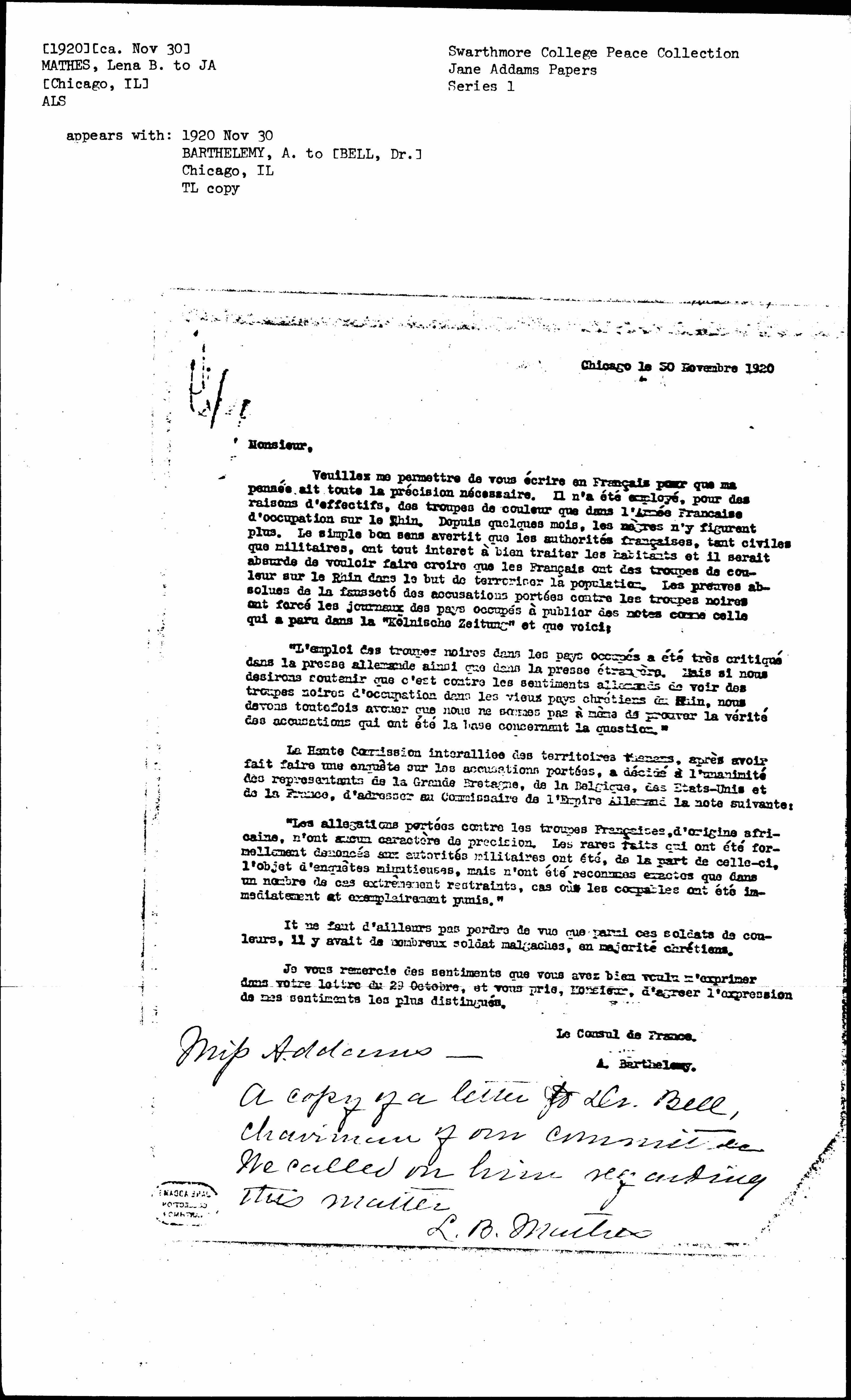 A copy of a letter to Dr. Bell, chairman of our committee. We called on him regarding this matter.