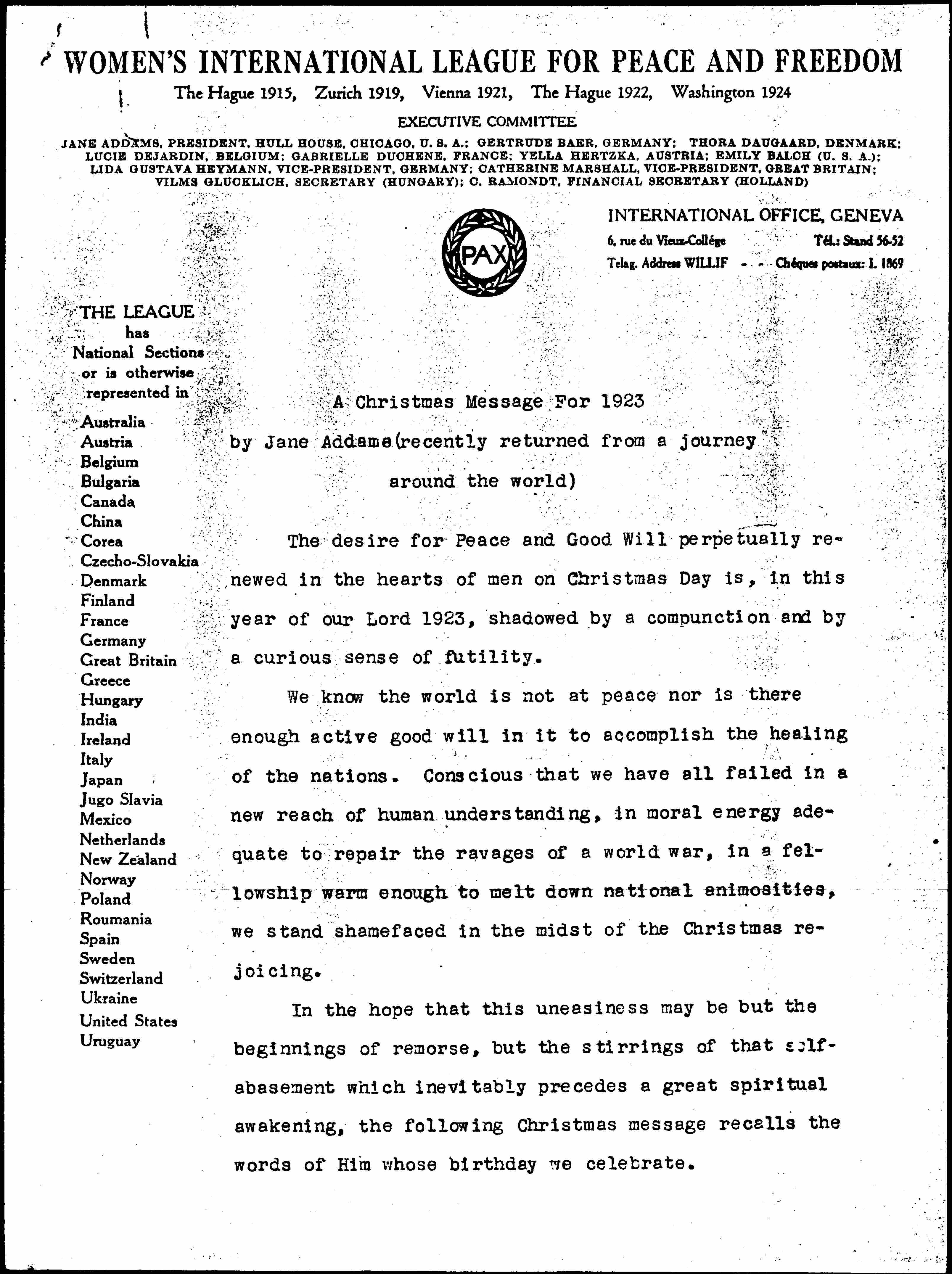 The desire for Peace and Good Will perpetually renewed in the hearts of men on Christmas Day is, in this year of our Lord 1923, shadowed by a compunction and by a curious sense of futility.