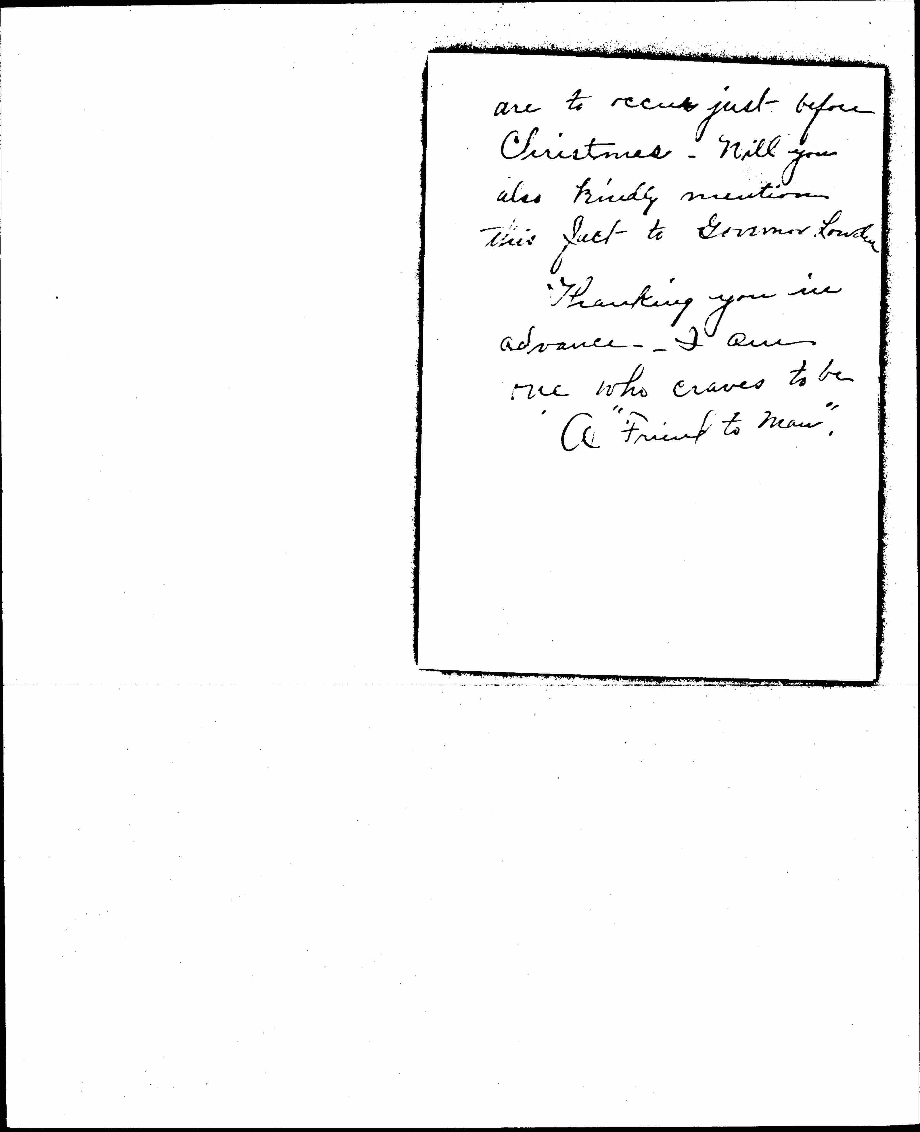 I trust Governor Lowden gives him an extension of time -- for it spoils the holiday spirit for many of us to know hangings [page 2] are to occur just before Christmas. Will you also kindly mention this fact to Governor Lowden.