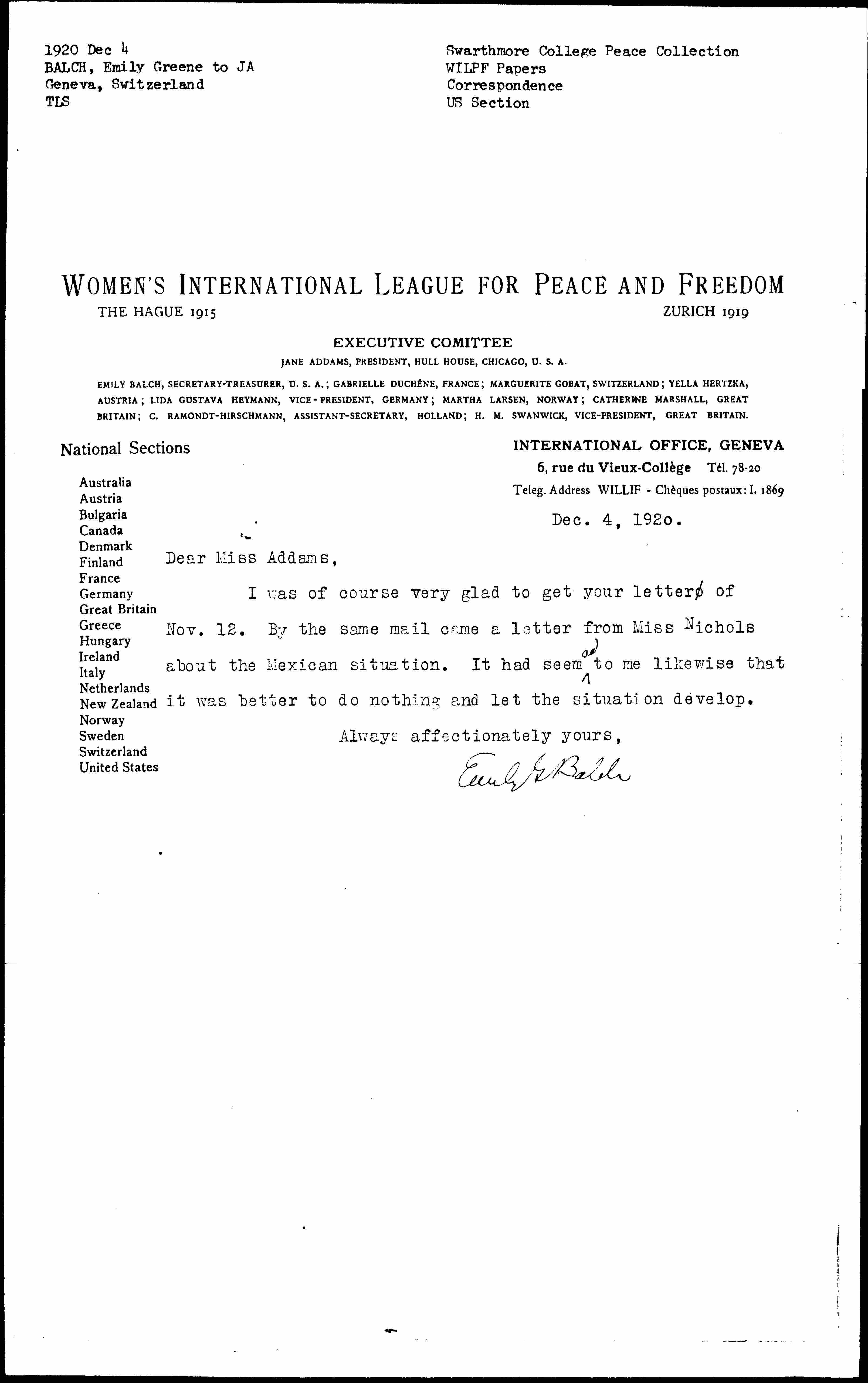 I was of course very glad to get your letter of Nov. 12. By the same mail came a letter from Miss Nichols about the Mexican situation. It had seemed to me likewise that it was better to do nothing and let the situation develop.