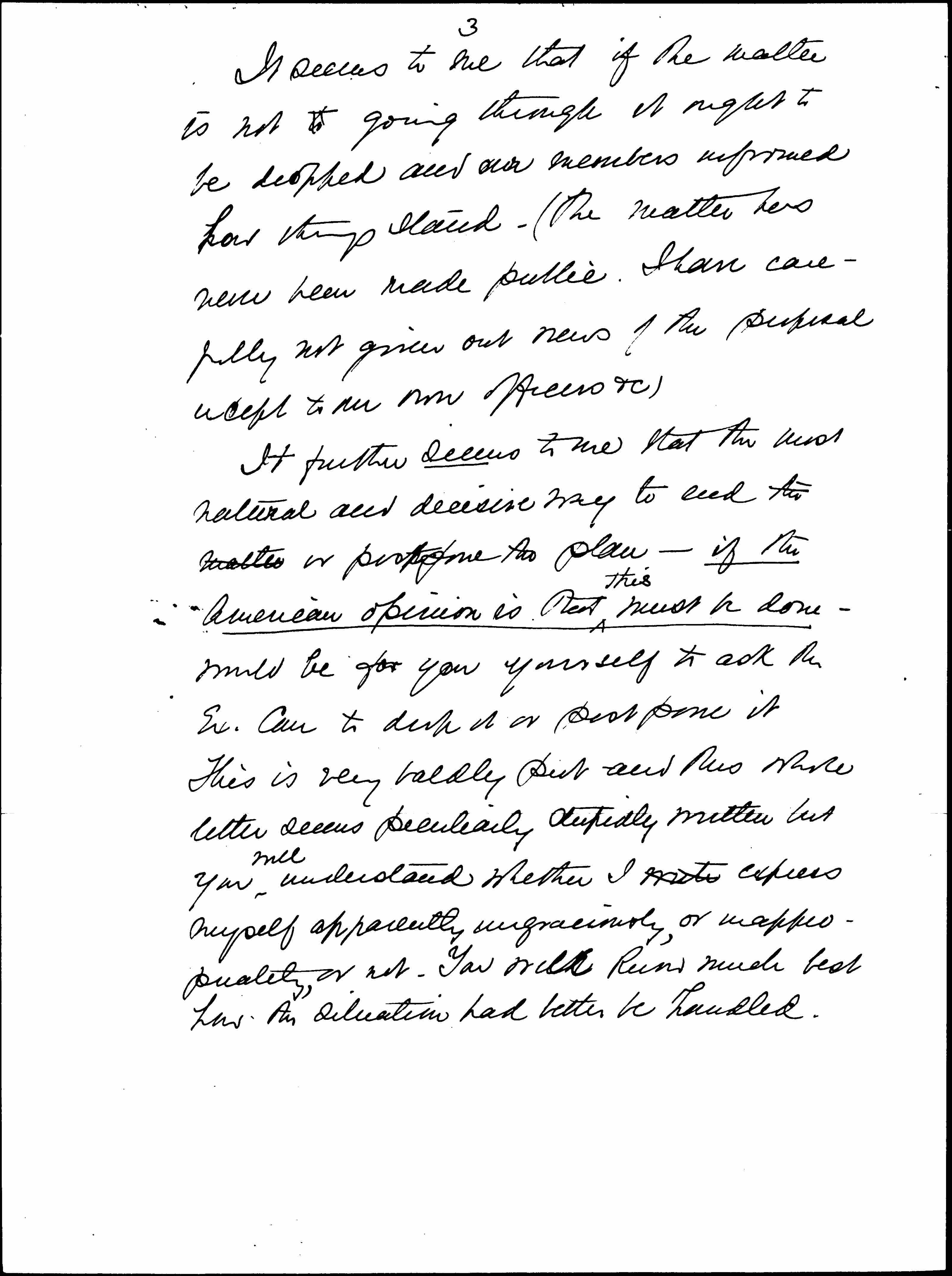 This is very badly put and this whole letter seems peculiarly stupidly written but you ↑will↓ understand whether I write express myself apparently ungraciously, or inappropriately or not. You will [know] much best how Am situation had better be handled. [page 4]