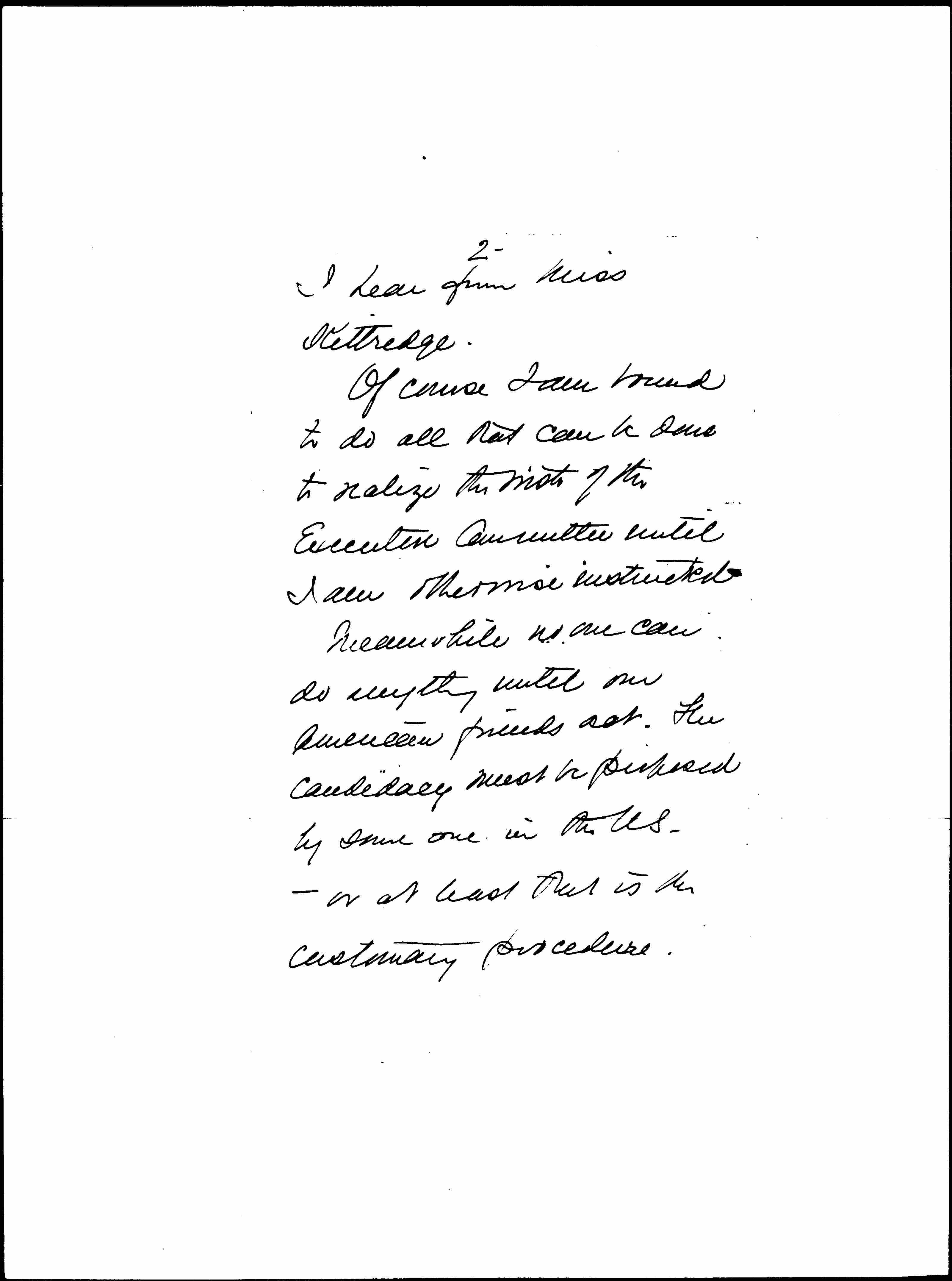 Of course I am bound to do all that can be done to realize the wish of the Executive Committee until I am otherwise instructed. Meanwhile no one can do anything until our American friends act. The candidacy must be proposed by some one in the U.S. -- or at least that is the customary procedure. [page 3]