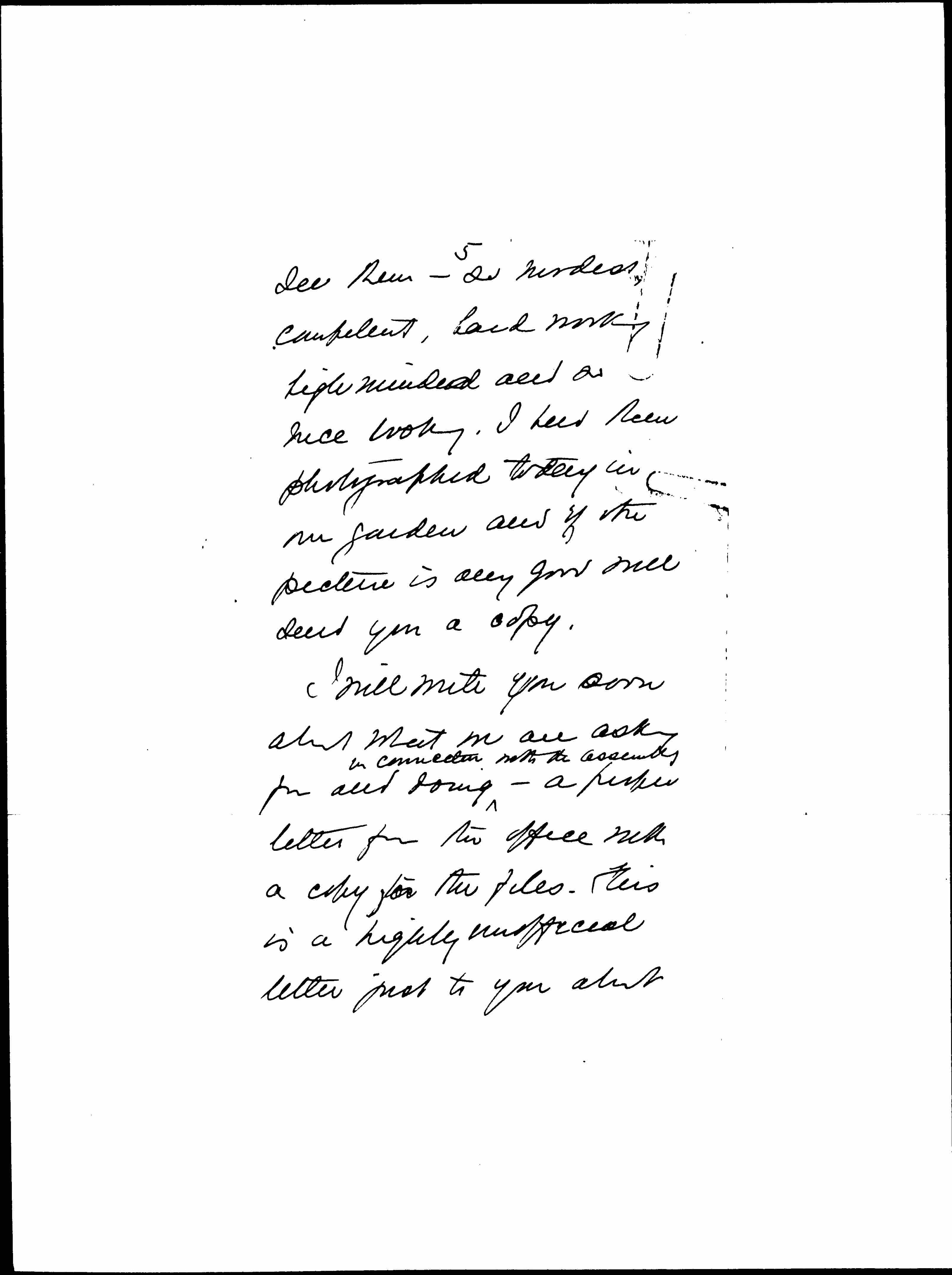 I will write you soon about what we are asking for and doing ↑in connection with the assembly↓ -- a proper letter from the office with a copy for the files. This is a highly unofficial letter just to you about [page 6] this Nobel Prize matter which troubles me a good deal.