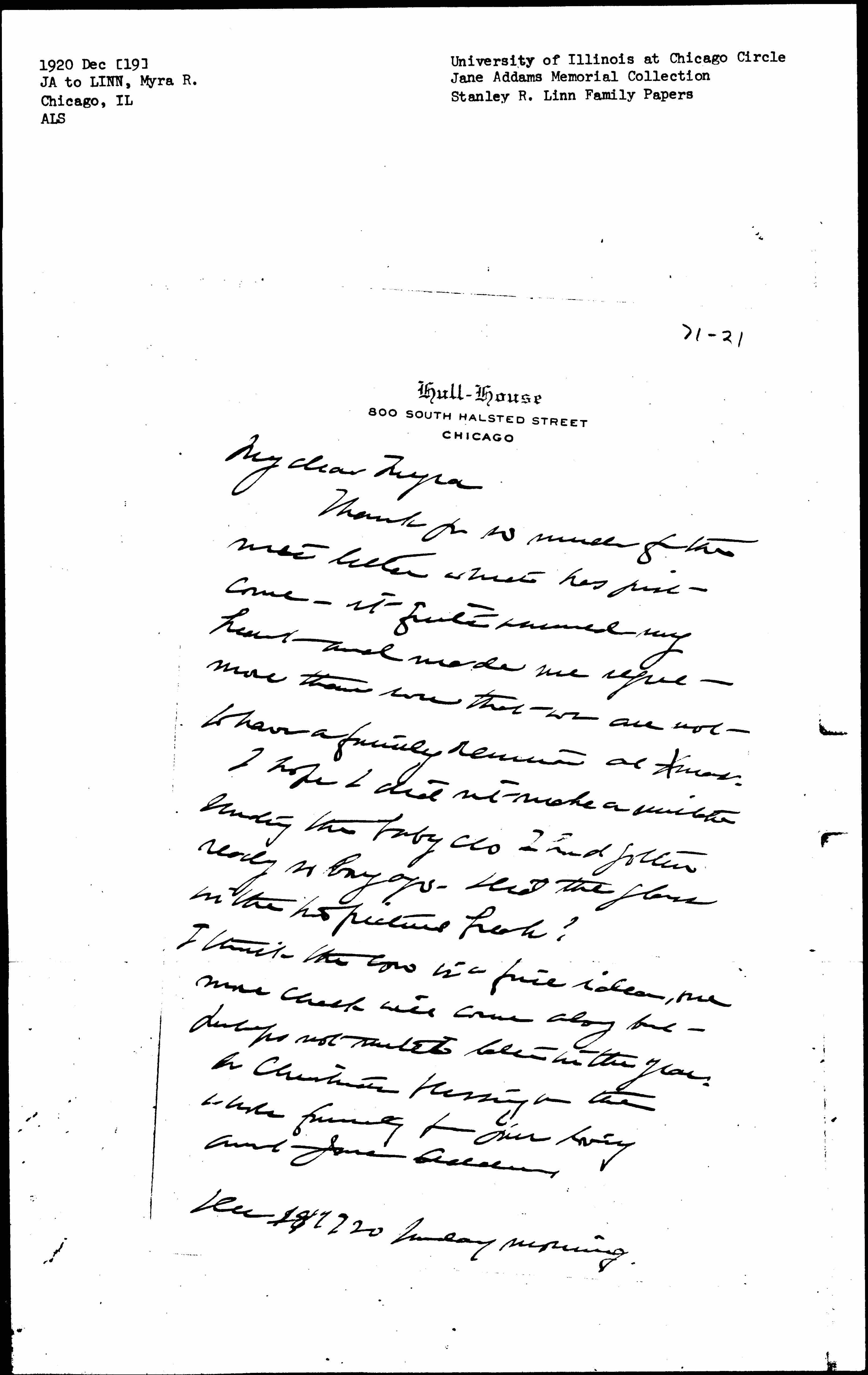 A Christmas blessing on the entire family from your loving Aunt Jane Addams