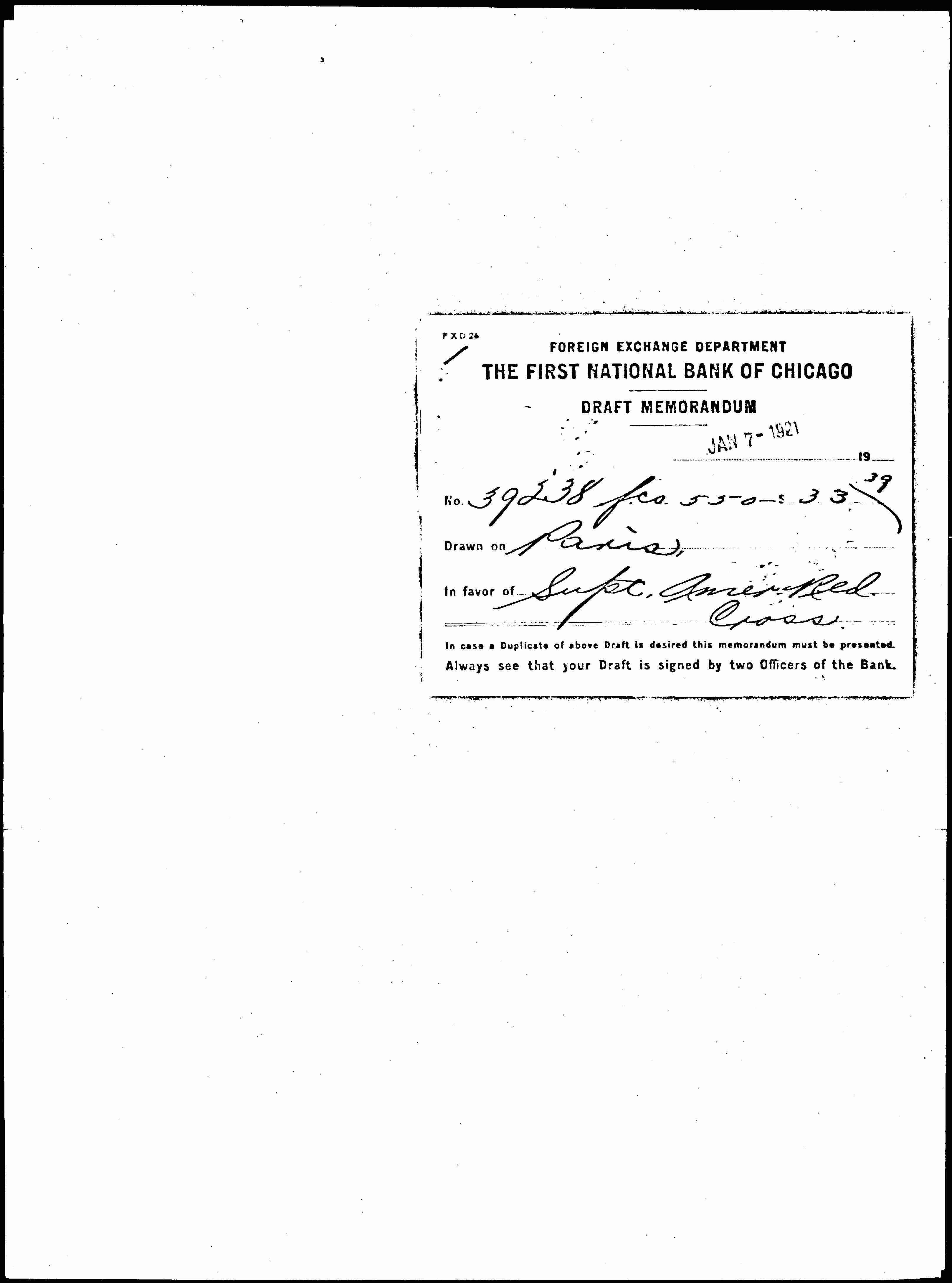 In case a Duplicate of above Draft is desired this memorandum must be presented.