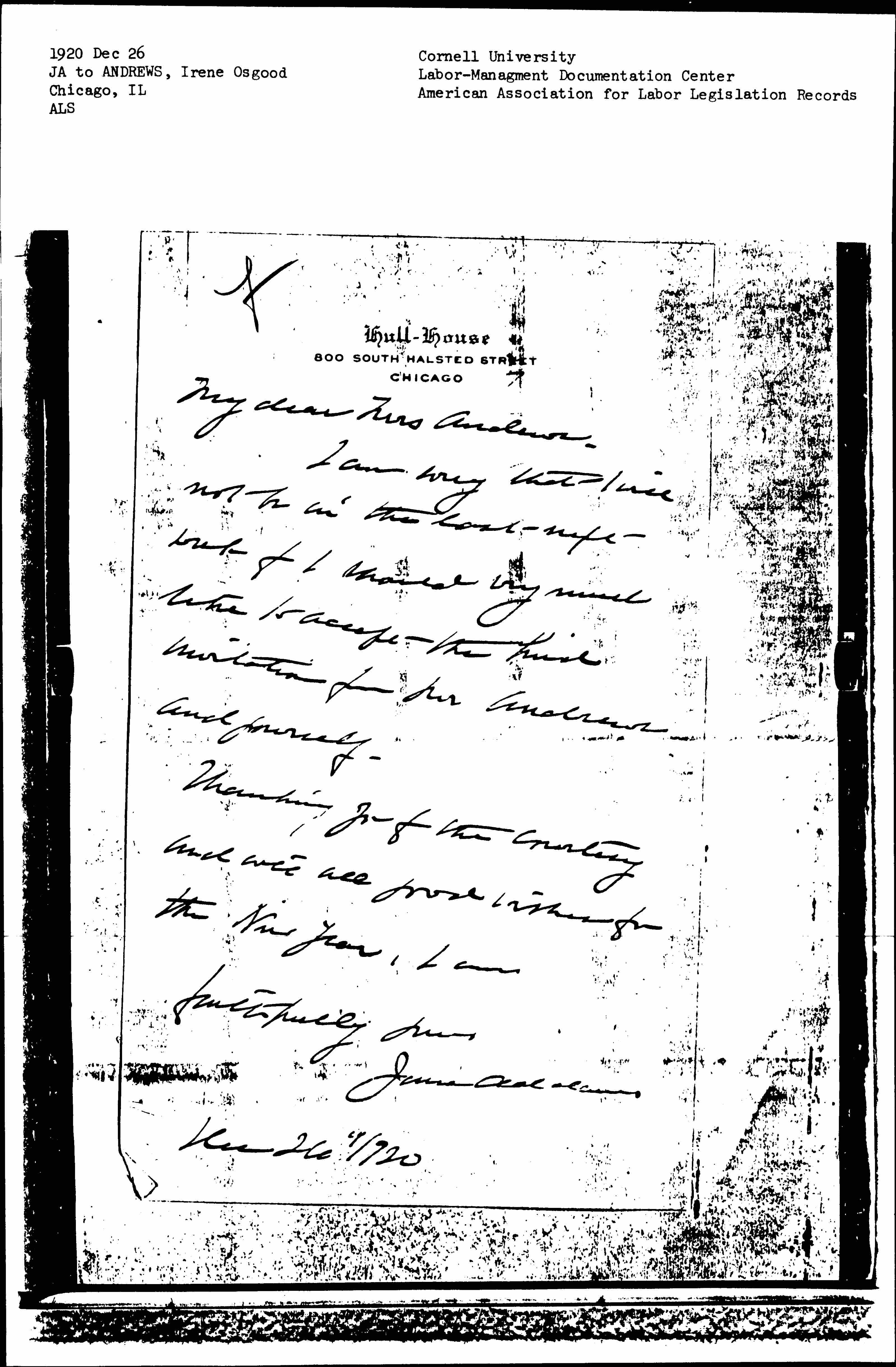 I am sorry that I will not be in the east next week for I should very much like to accept the kind invitation from Mr Andrews and yourself.