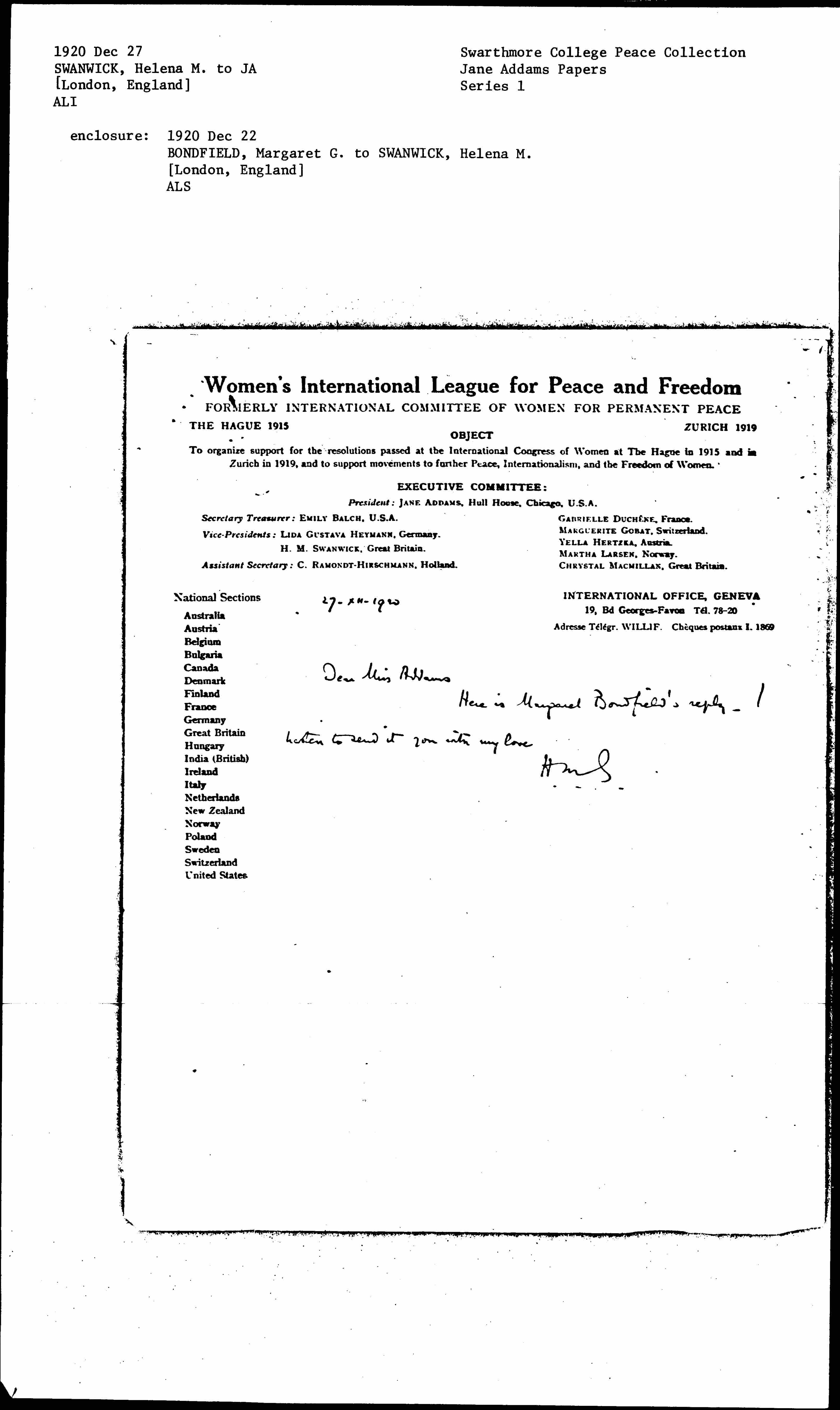 FORMERLY INTERNATIONAL COMMITTEE OF WOMEN FOR PERMANENT PEACE