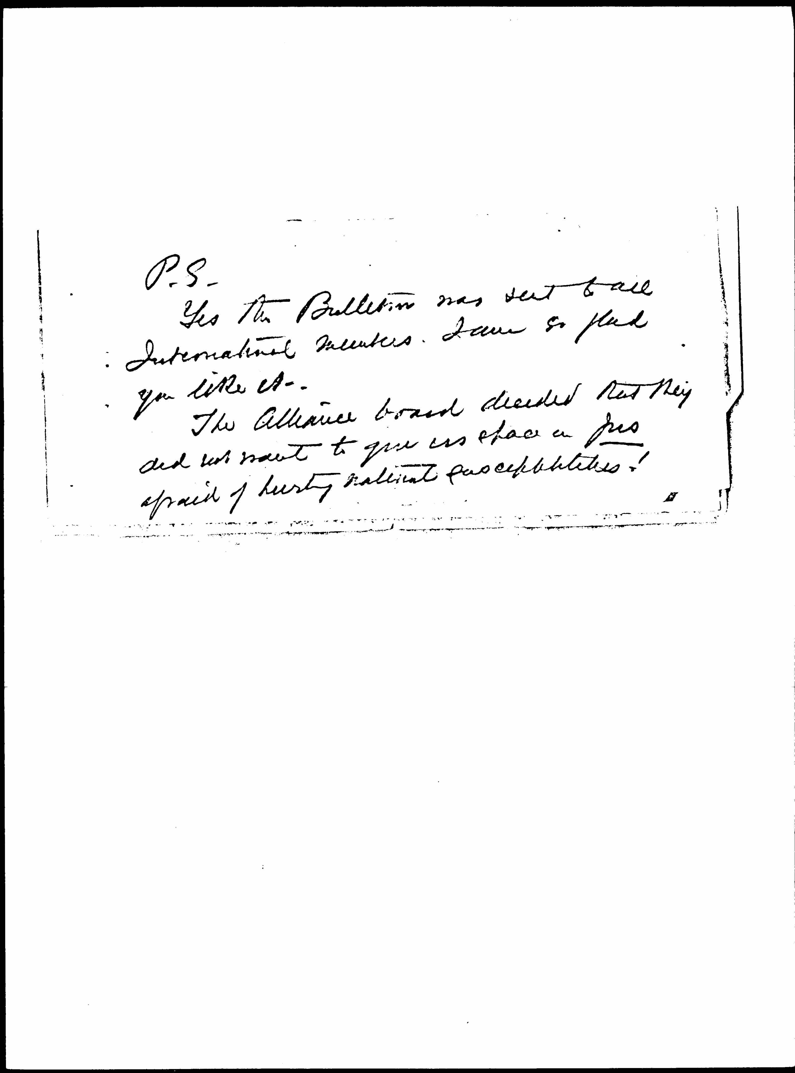 And beyond all this looms the question of the future of our [organization]. It is weak everywhere unless in Germany as far as I can judge. Radicals want to work with Socialists or, in England, the Labour Party. Conservatives want to do relief work. Feminists want to work together with men. Nobody wants either to work or to give, anyway!
