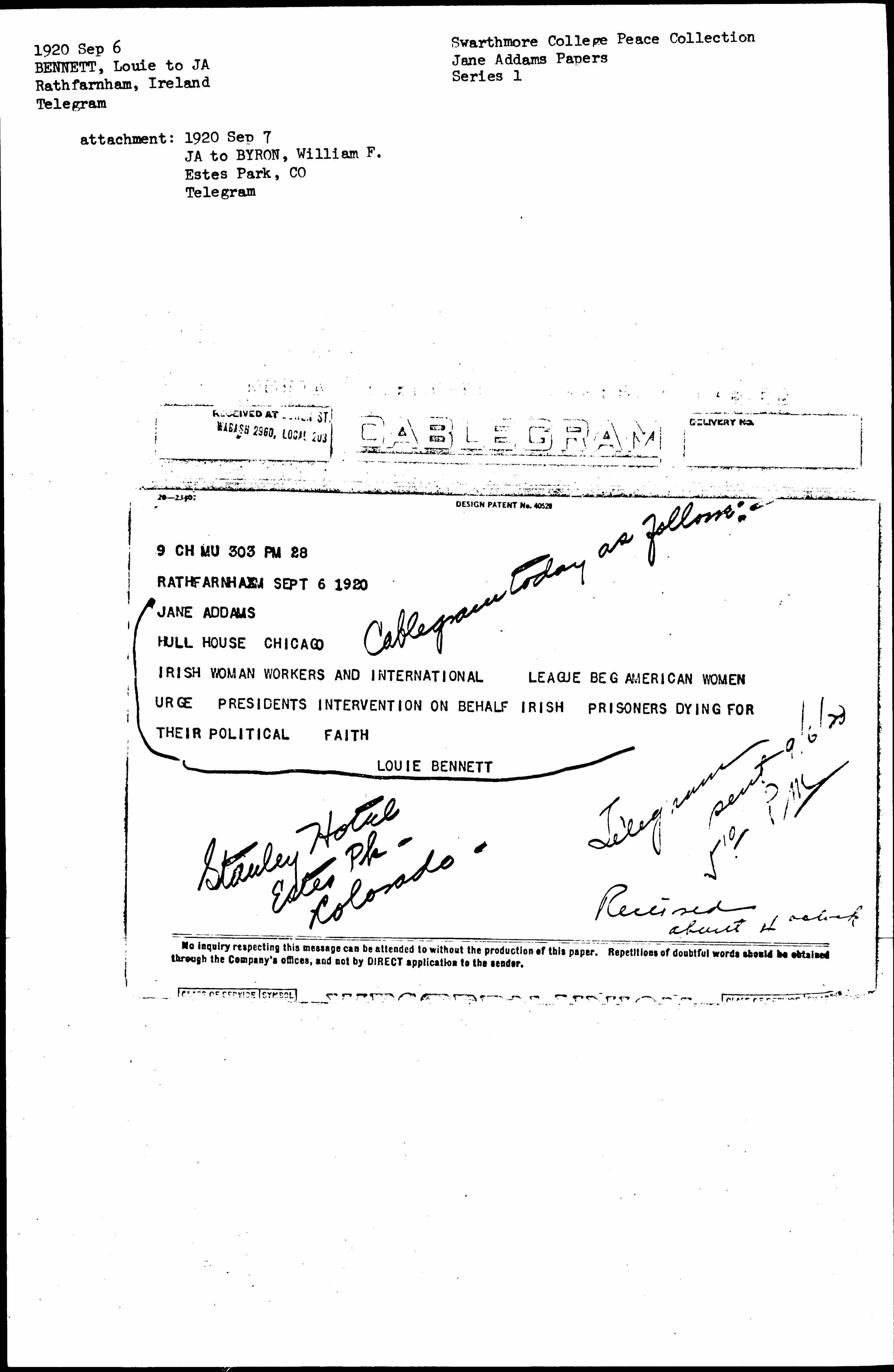 IRISH WOMAN WORKERS AND INTERNATIONAL LEAGUE BEG AMERICAN WOMEN URGE PRESIDENTS INTERVENTION ON BEHALF IRISH PRISONERS DYING FOR THEIR POLITICAL FAITH