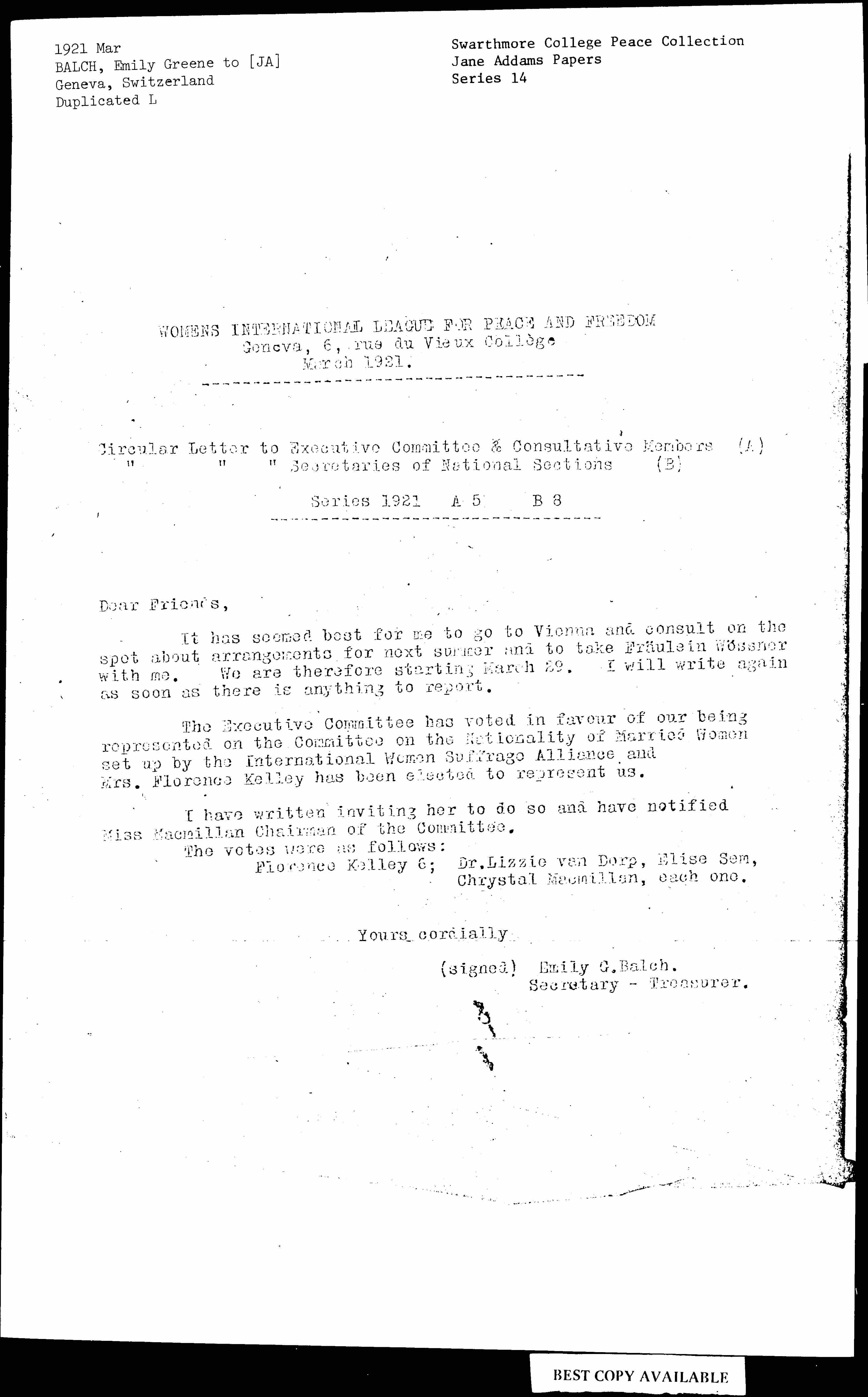 (signed) Emily G. Balch.