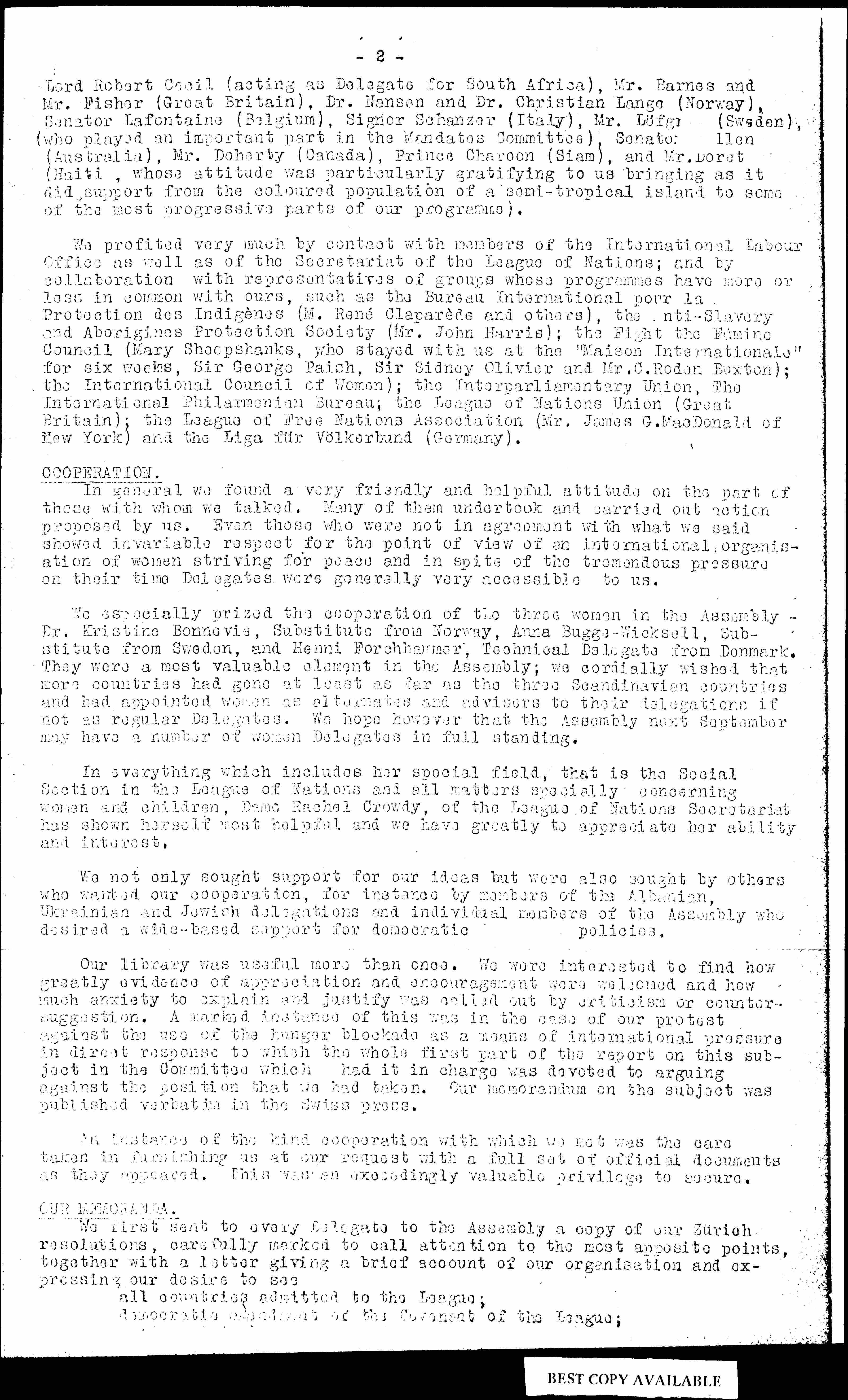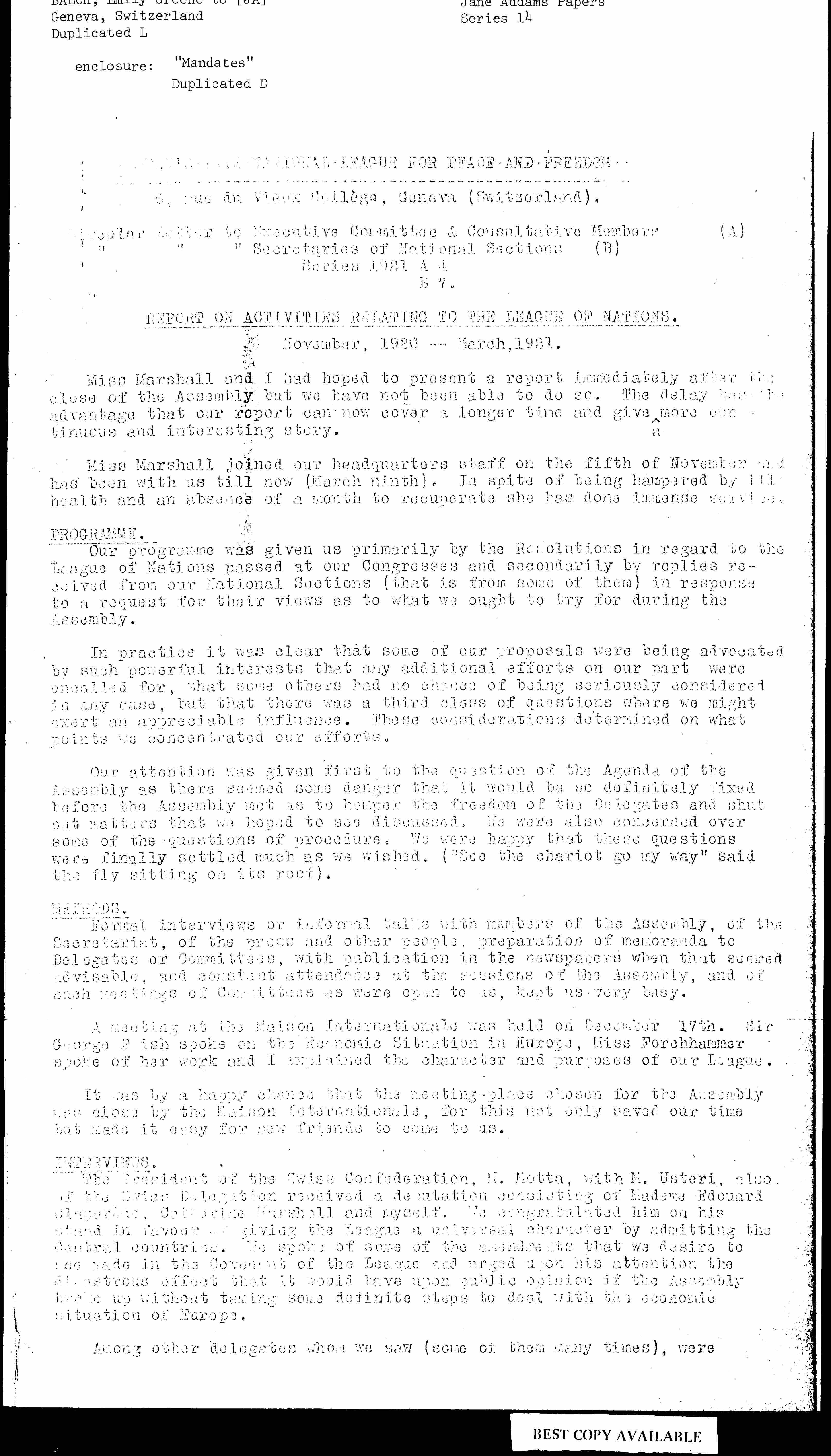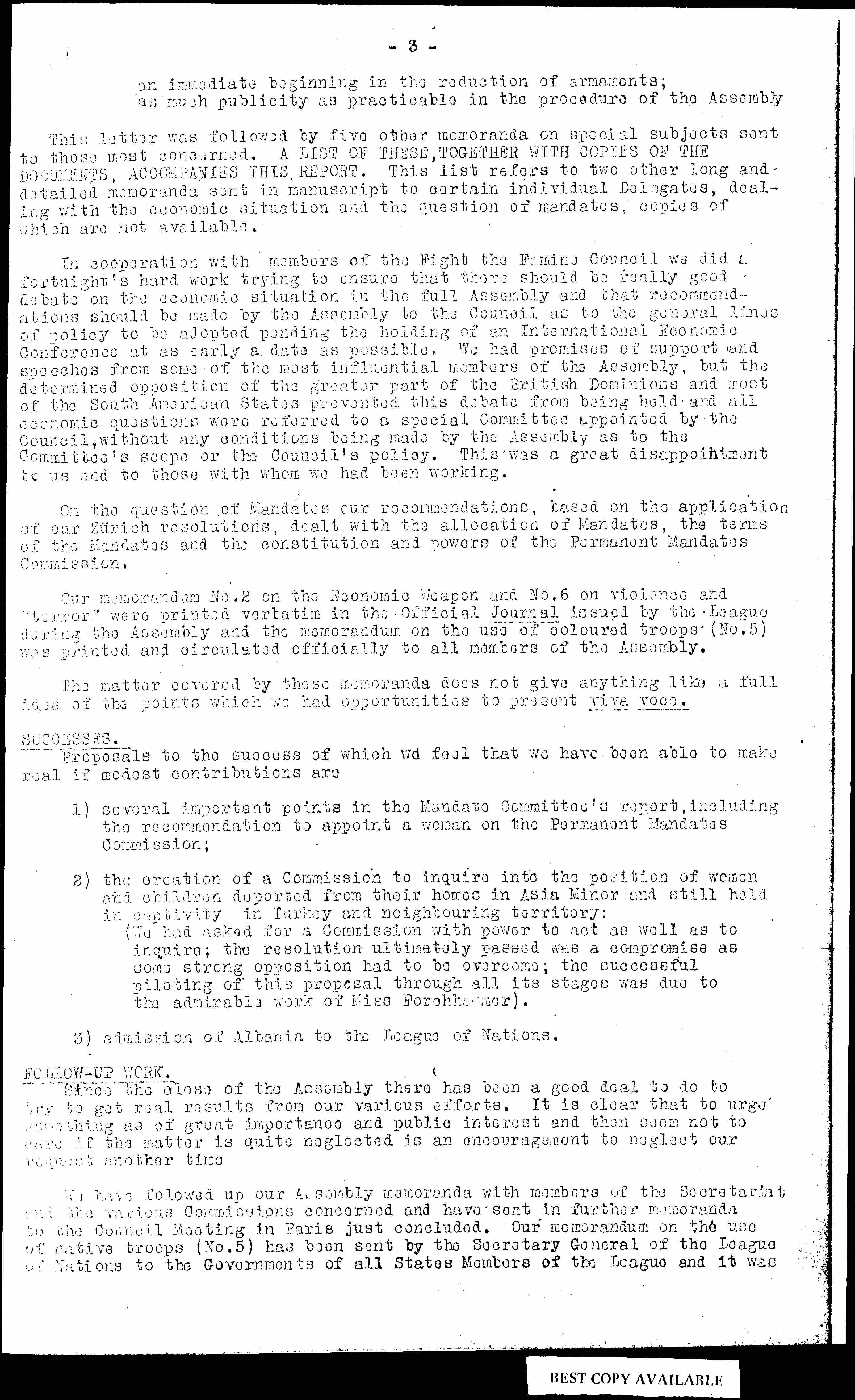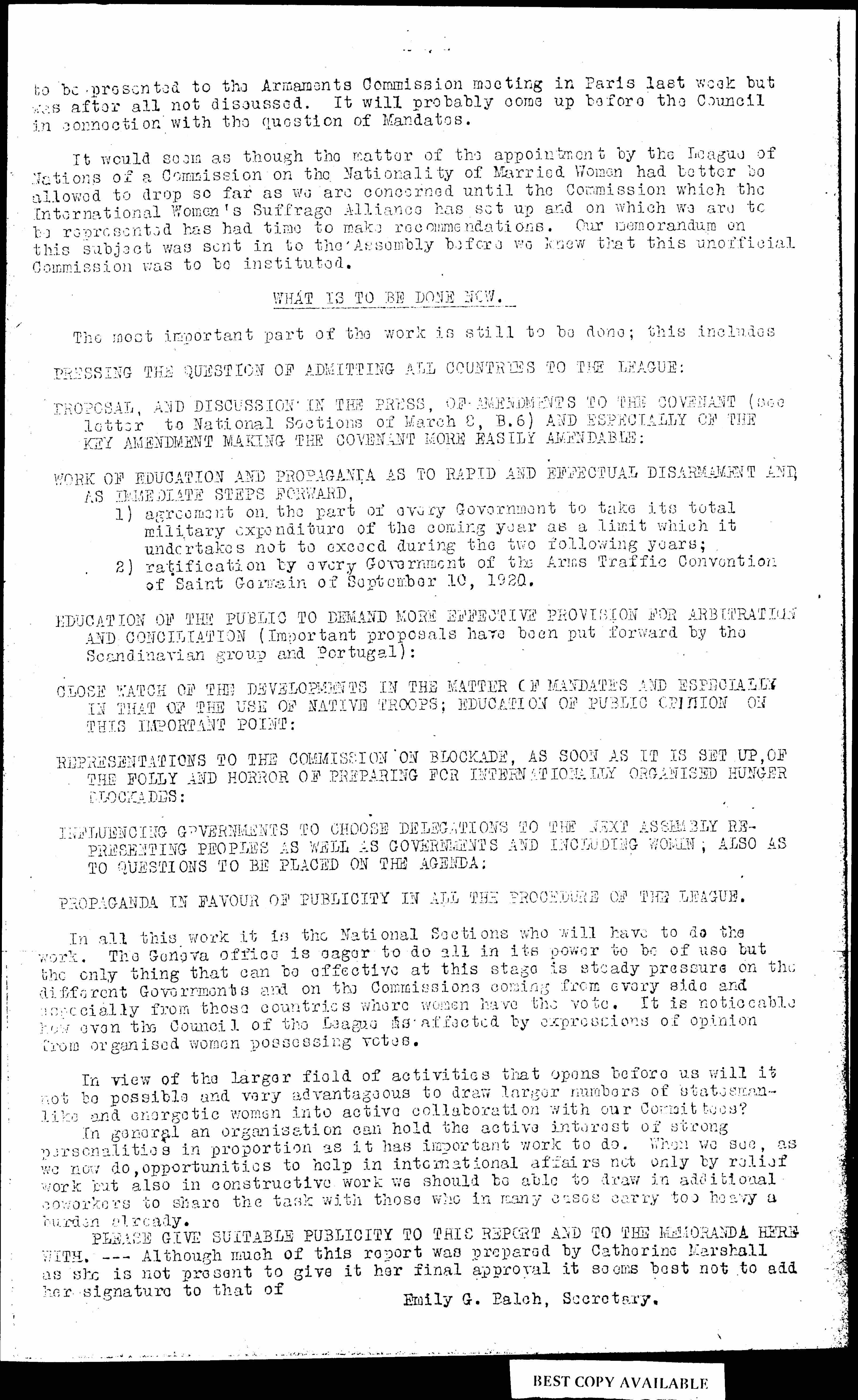 Emily Greene Balch to Women's International League for Peace and Freedom Sections, February 9, 1921 (excerpts)