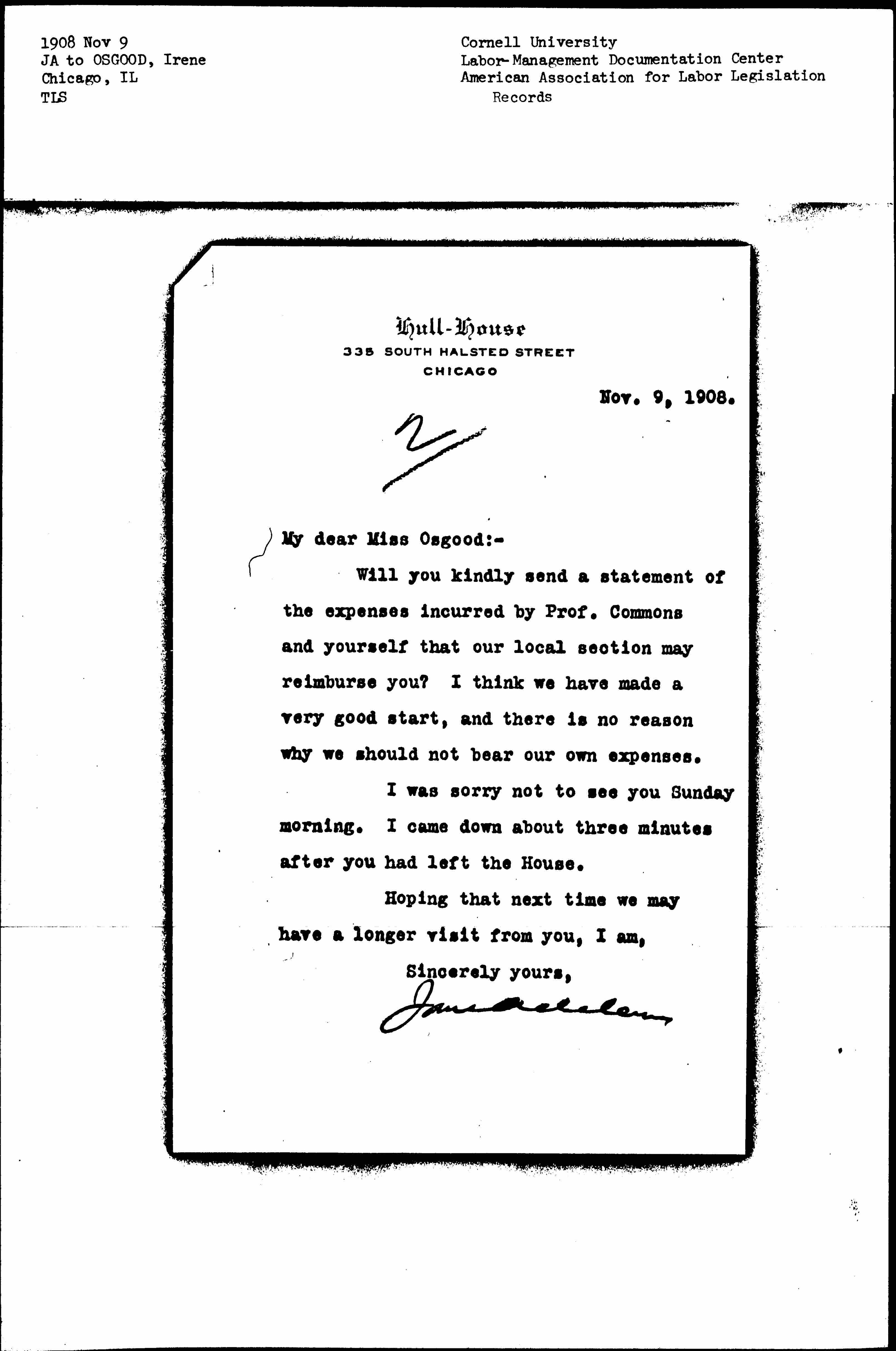 Jane Addams [signed]