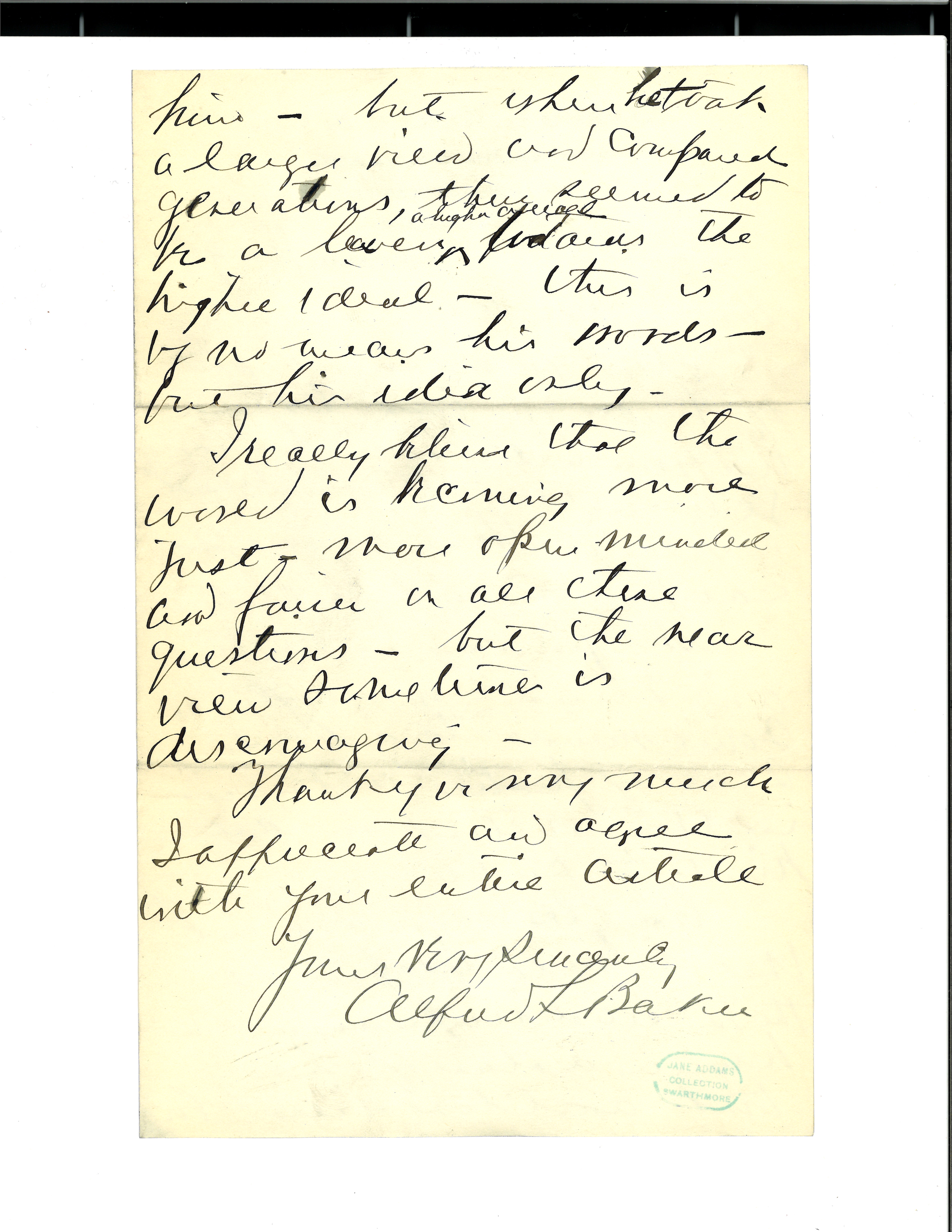 Carlyle says somewhere that he would despair of the so called improvement in human nature if he took a close view about [page 2] him -- but when he took a larger view and compared generations, there seemed to be a [leaven?] <a higher overall> [illegible] the higher ideal -- this is by no means his words -- but his idea only.