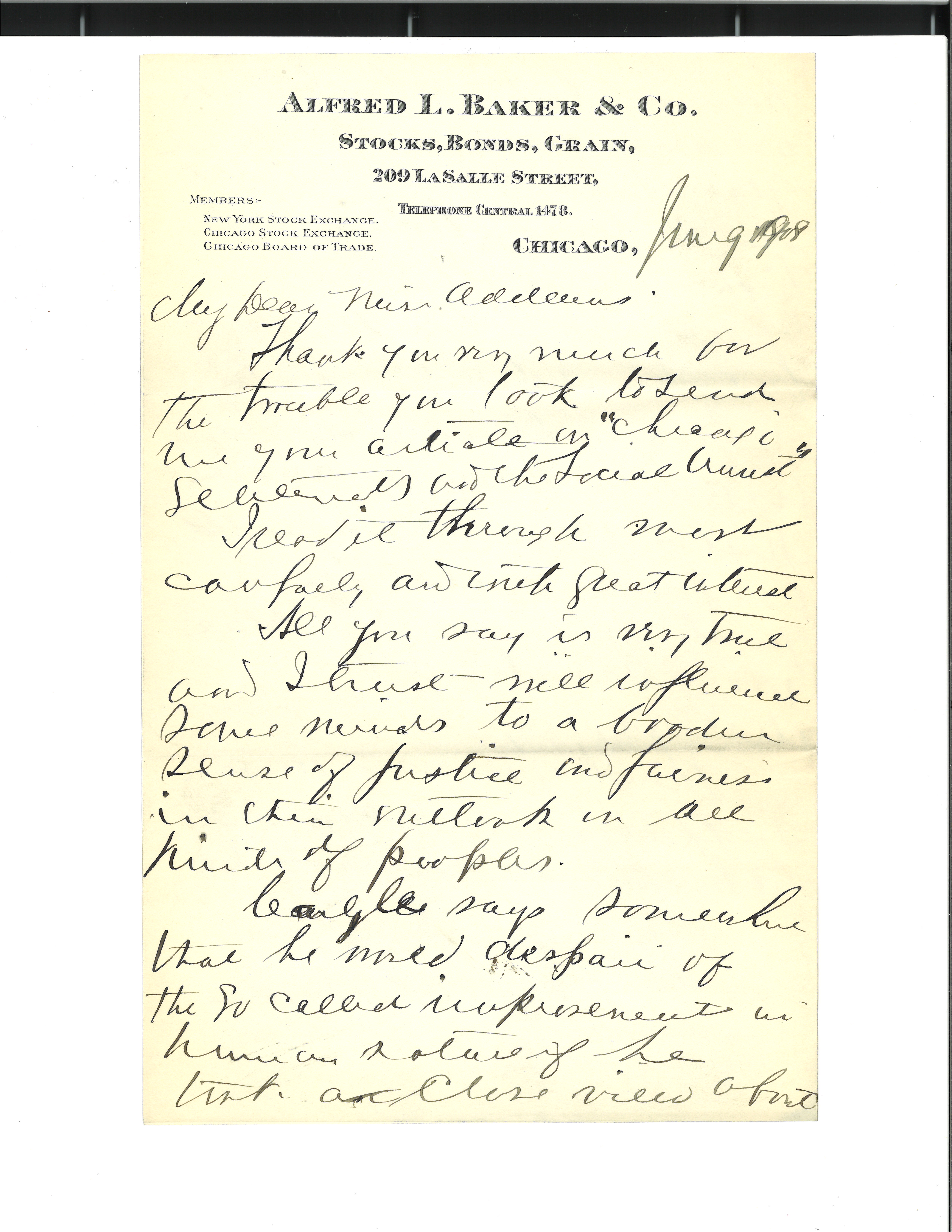 Thank you very much for the trouble you took to send me your article on "Chicago Settlements and the Social Unrest."