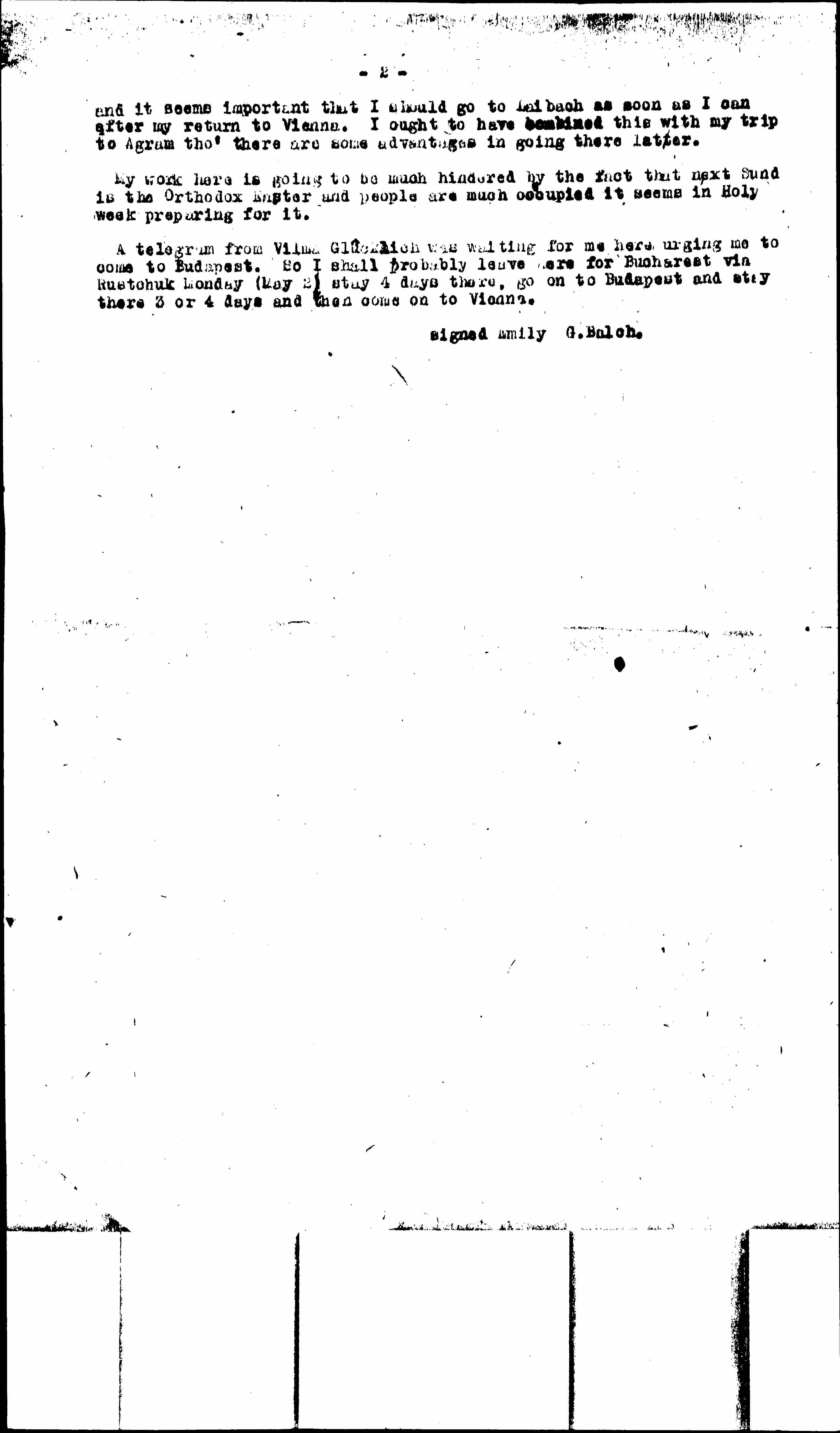 I think we shall find Slovenian women more sensible and it seems [page 2] important that I should go to Laibach as soon as I can after my return to Vienna. I ought to have combined this with my trip to Agram [though] there are some advantages in going there later.