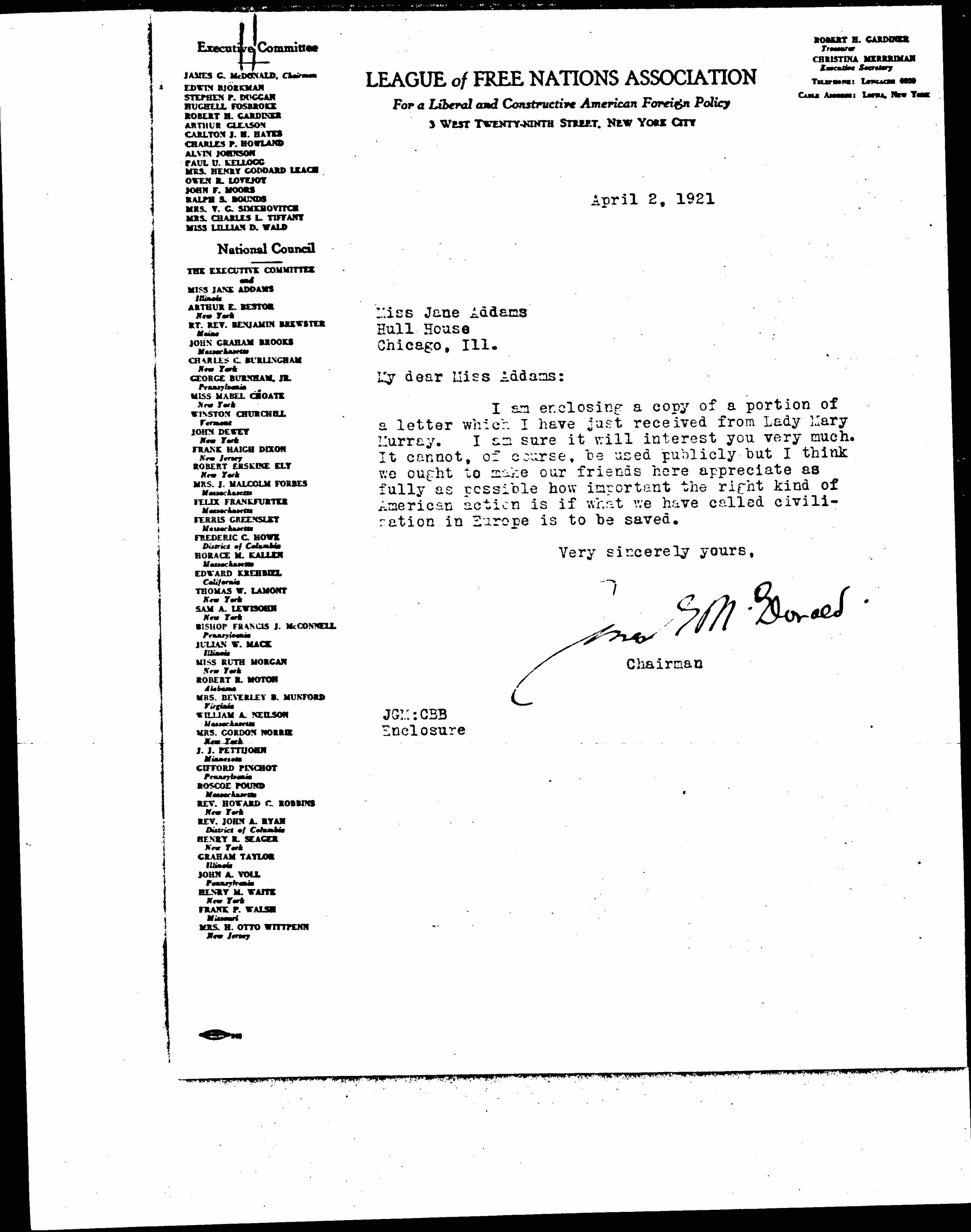 I am enclosing a copy of a portion of a letter which I have just received from Lady Mary Murray. I am sure it will interest you very much. It cannot, for course, be used publicly but I think we ought to make our friends here appreciate as fully as possible how important the right kind of American action is if what we have called civilization in Europe is to be saved.