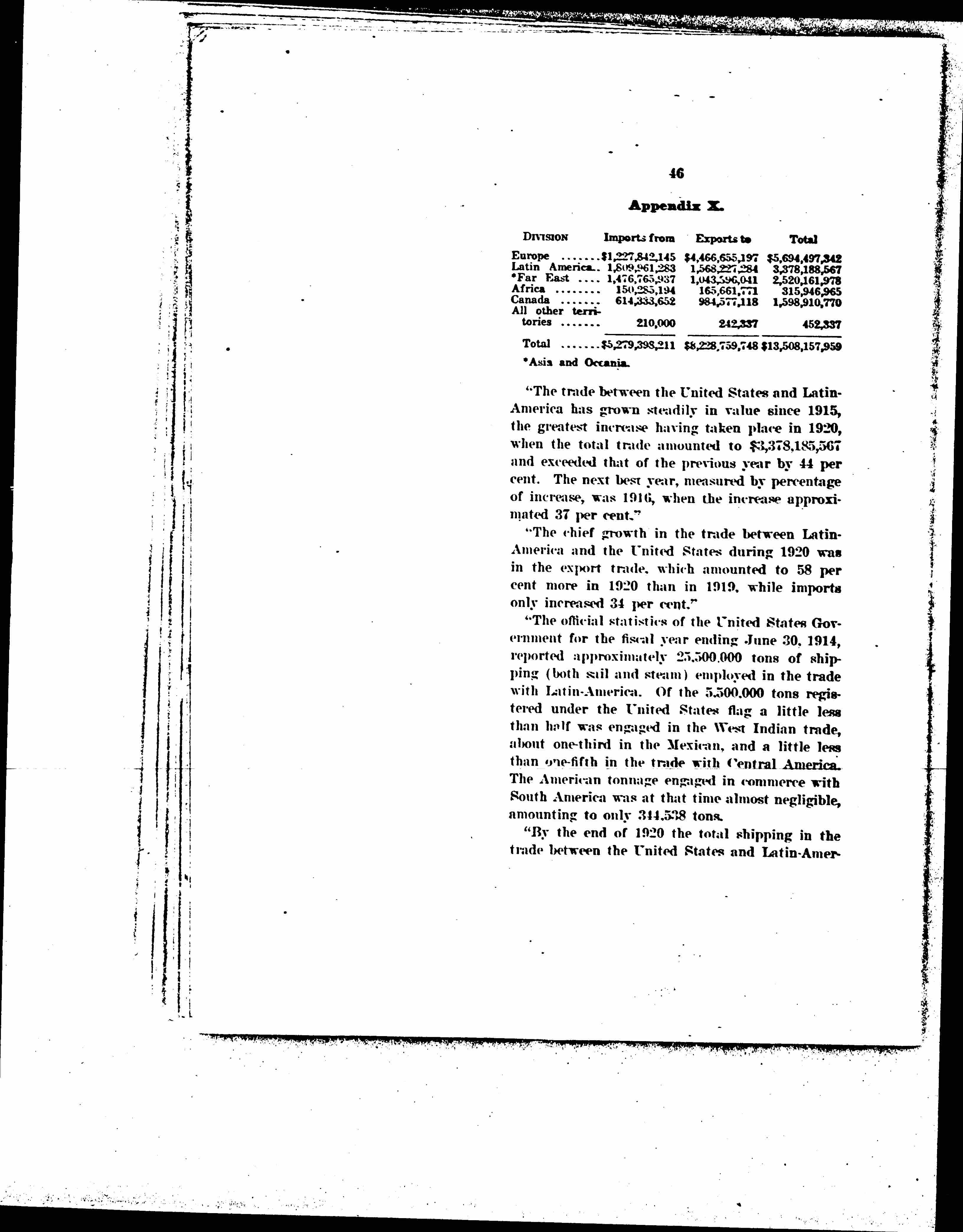 The trade of the United States with Latin America during 1920 was next in value to that with Europe. Its relative importance in world trade appears from the table in Appendix X.