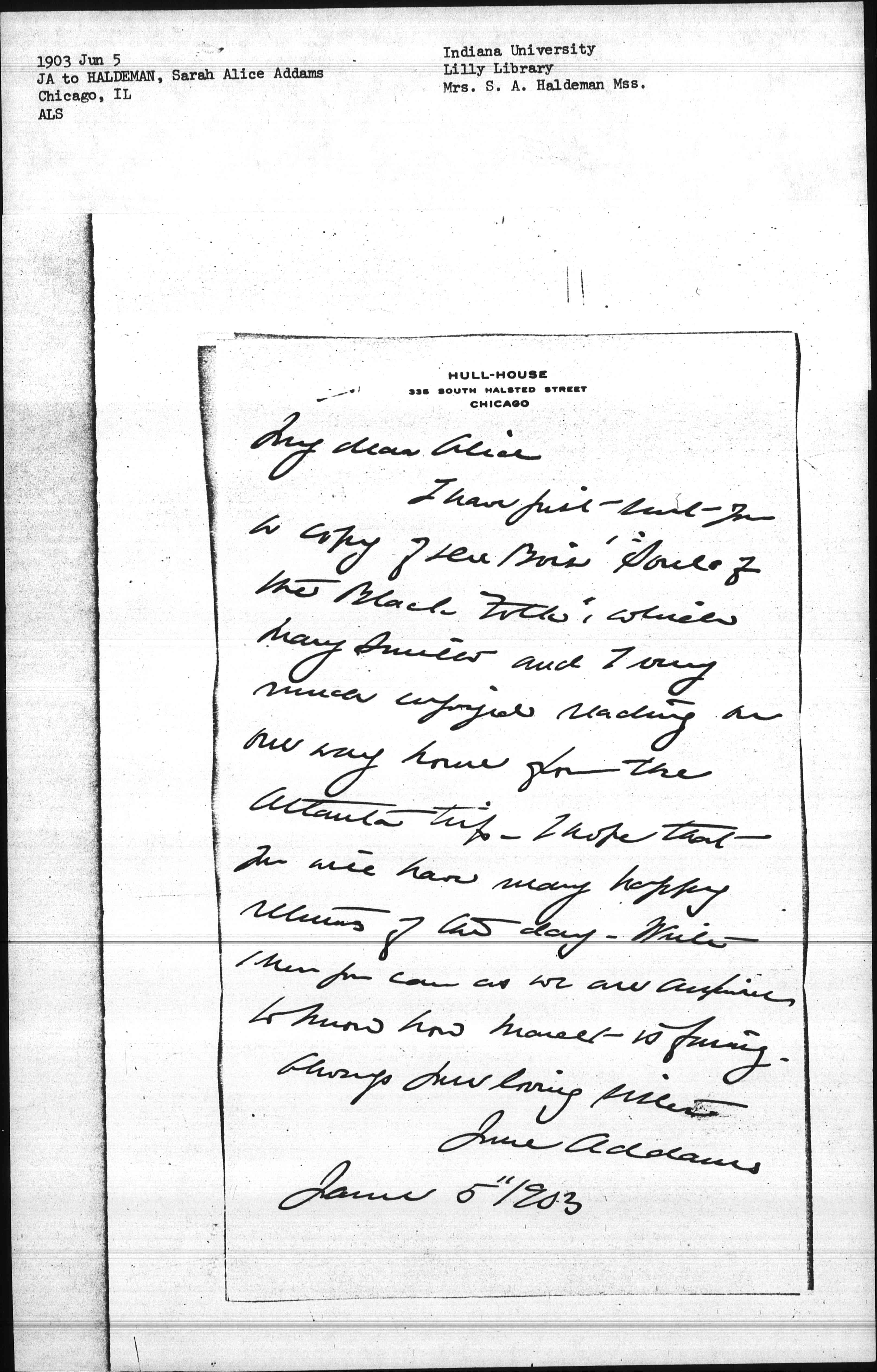 I have just sent you a copy of Du Bois' "Souls of the Black Folk," which Mary Smith and I very much enjoyed reading on our way home from the Atlanta trip. I hope that you will have many happy returns of the day. Write when you can as we are anxious to know how Marcet is faring.