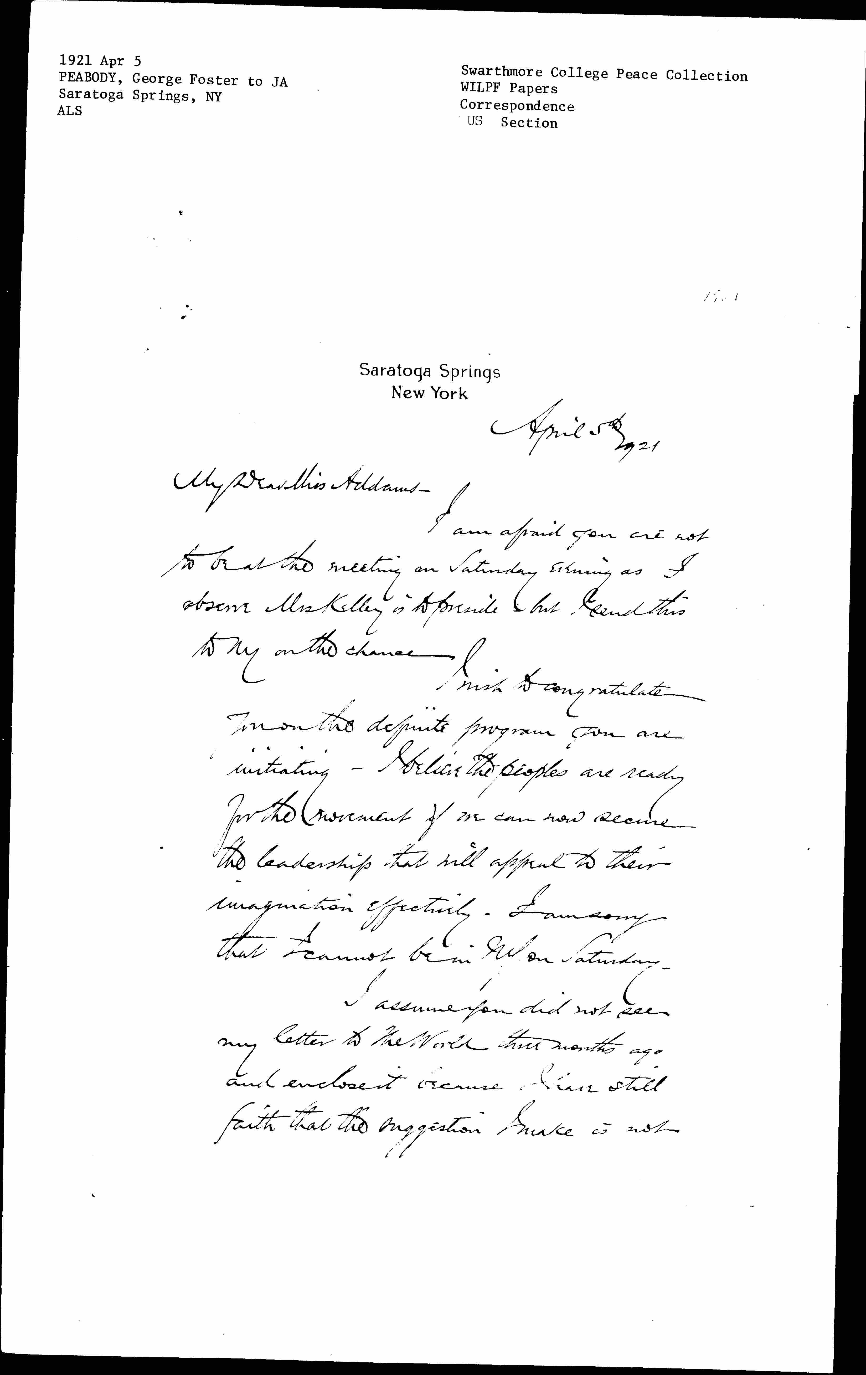 I am afraid you are not to be at the meeting on Saturday evening as I observe Mrs Kelley is to preside but send this to NY on the chance.