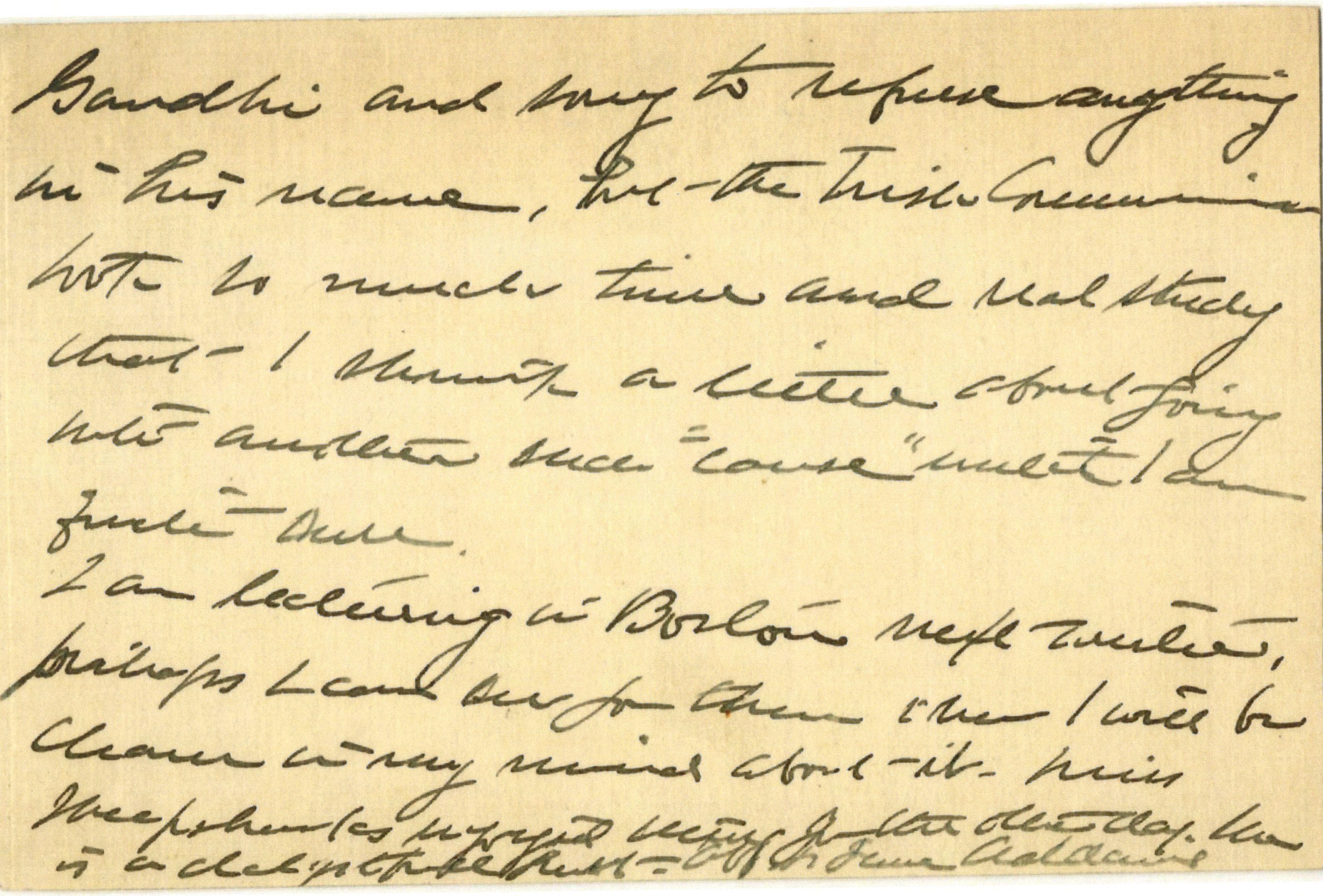 As you may imagine I am devoted to [page 2] Gandhi and sorry to refuse anything in his name, but the Irish Commission took so much time and real study that I shrink a little about going into another such "cause" until I am quite sure.