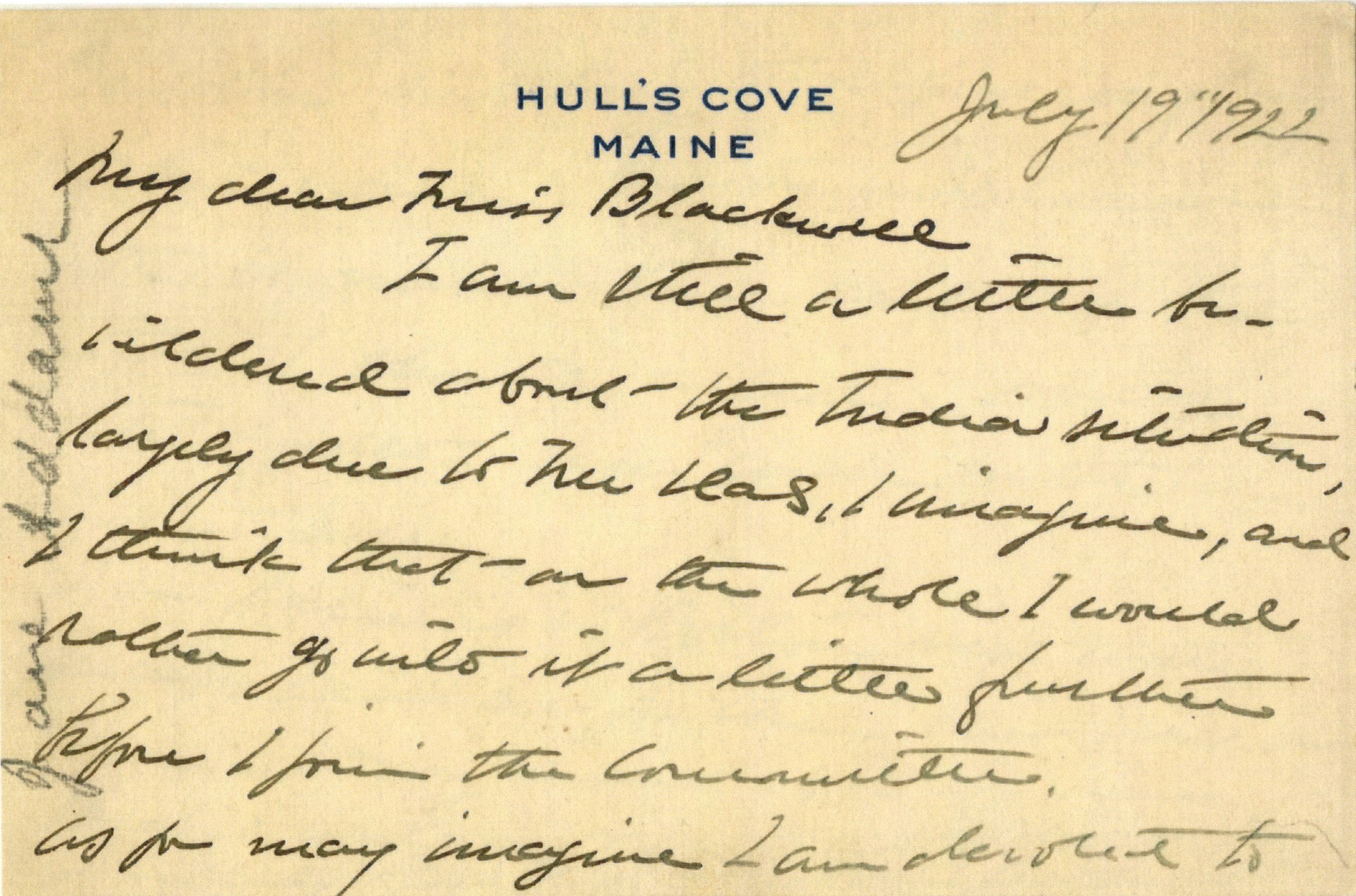 I am lecturing in Boston next winter, perhaps I can see you then when I will be clearer in my mind about it. Miss Sheepshanks enjoyed seeing you the other day. She is a delightful guest. Aff yrs Jane Addams