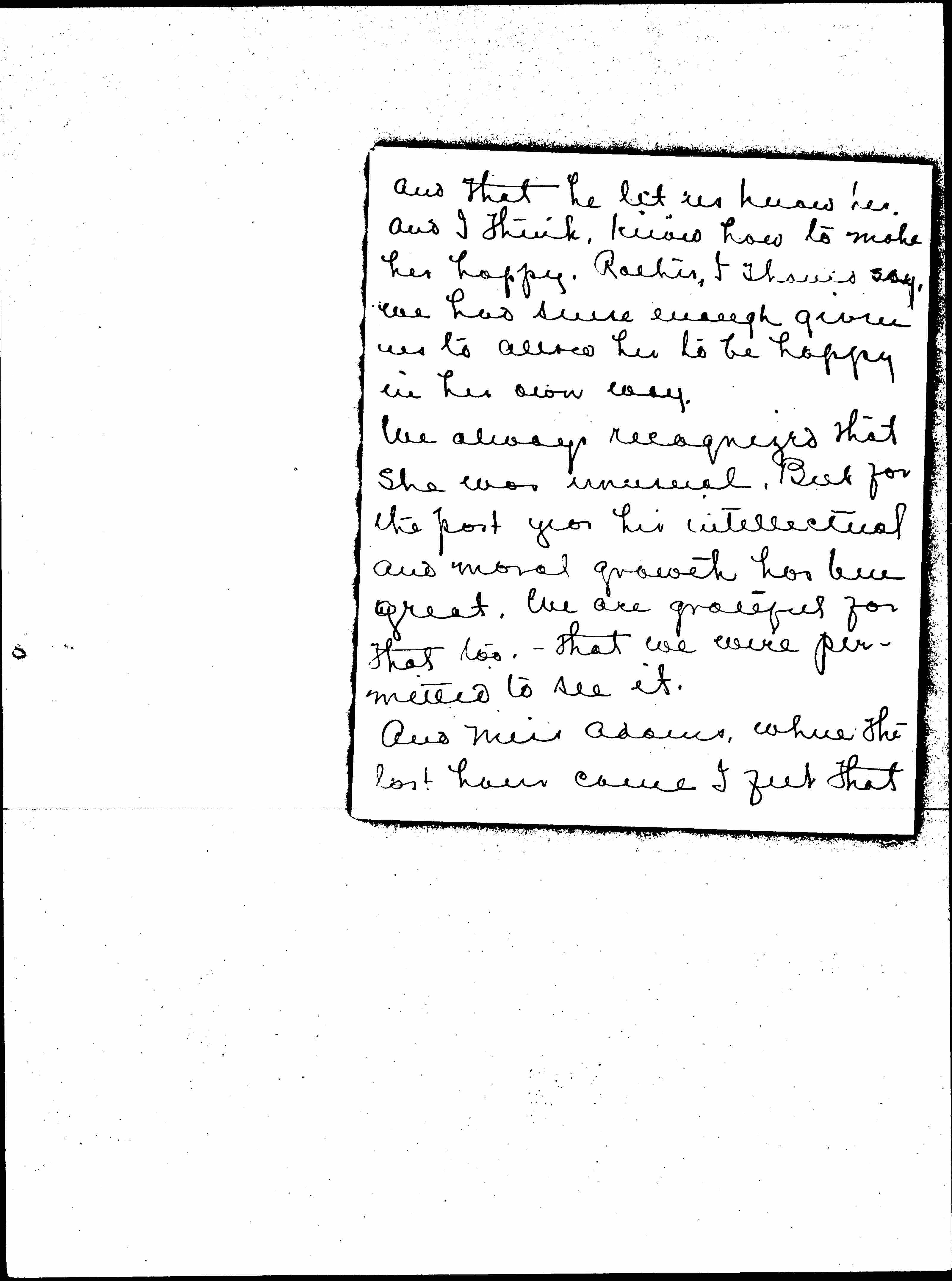 We always recognized that she was unusual. But for the past year her intellectual and moral growth has been great. We are grateful for that too, -- that we were permitted to see it.