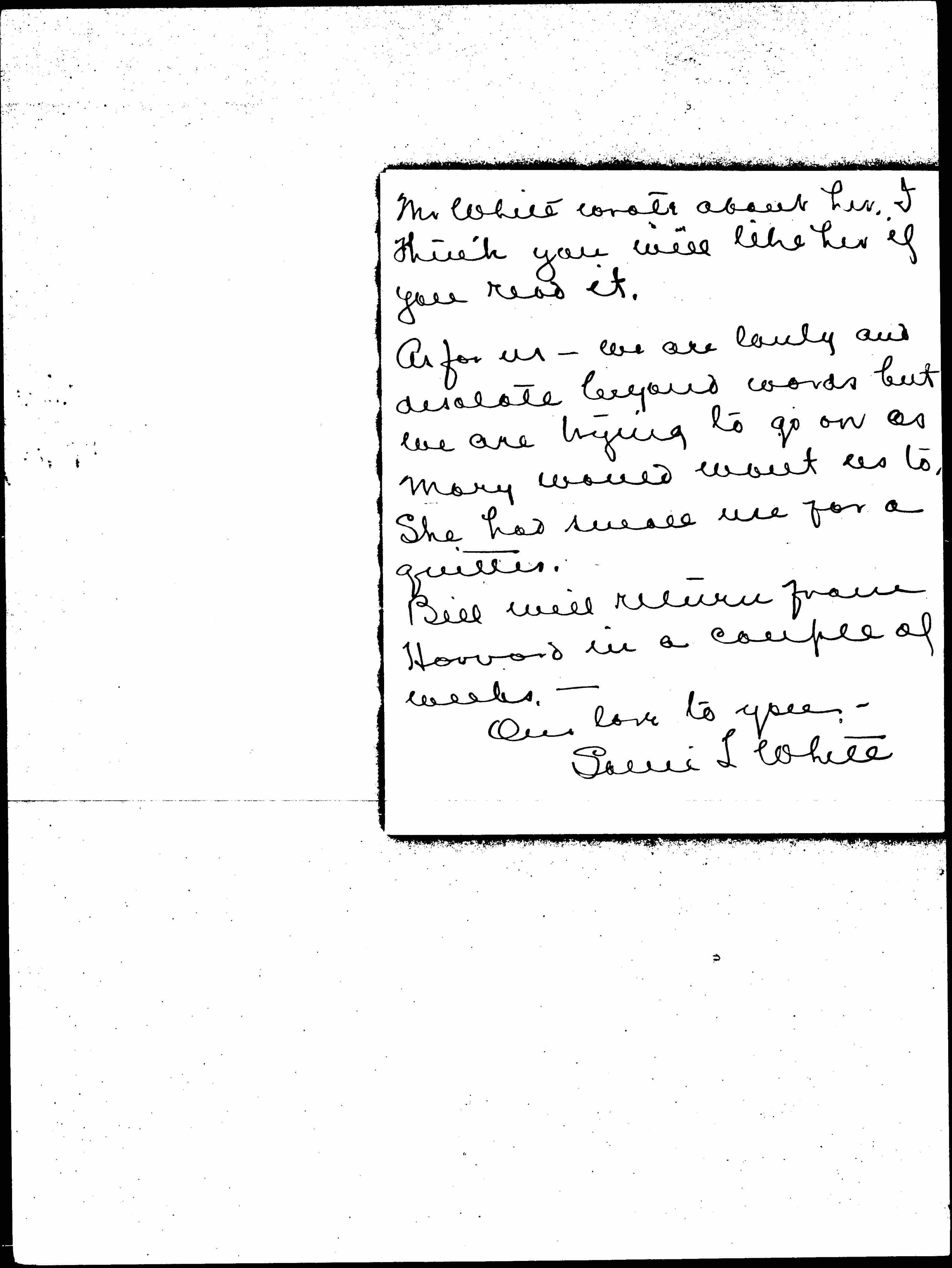 I am enclosing the bit [page 3] Mr White wrote about her. I think you will like her if you read it.