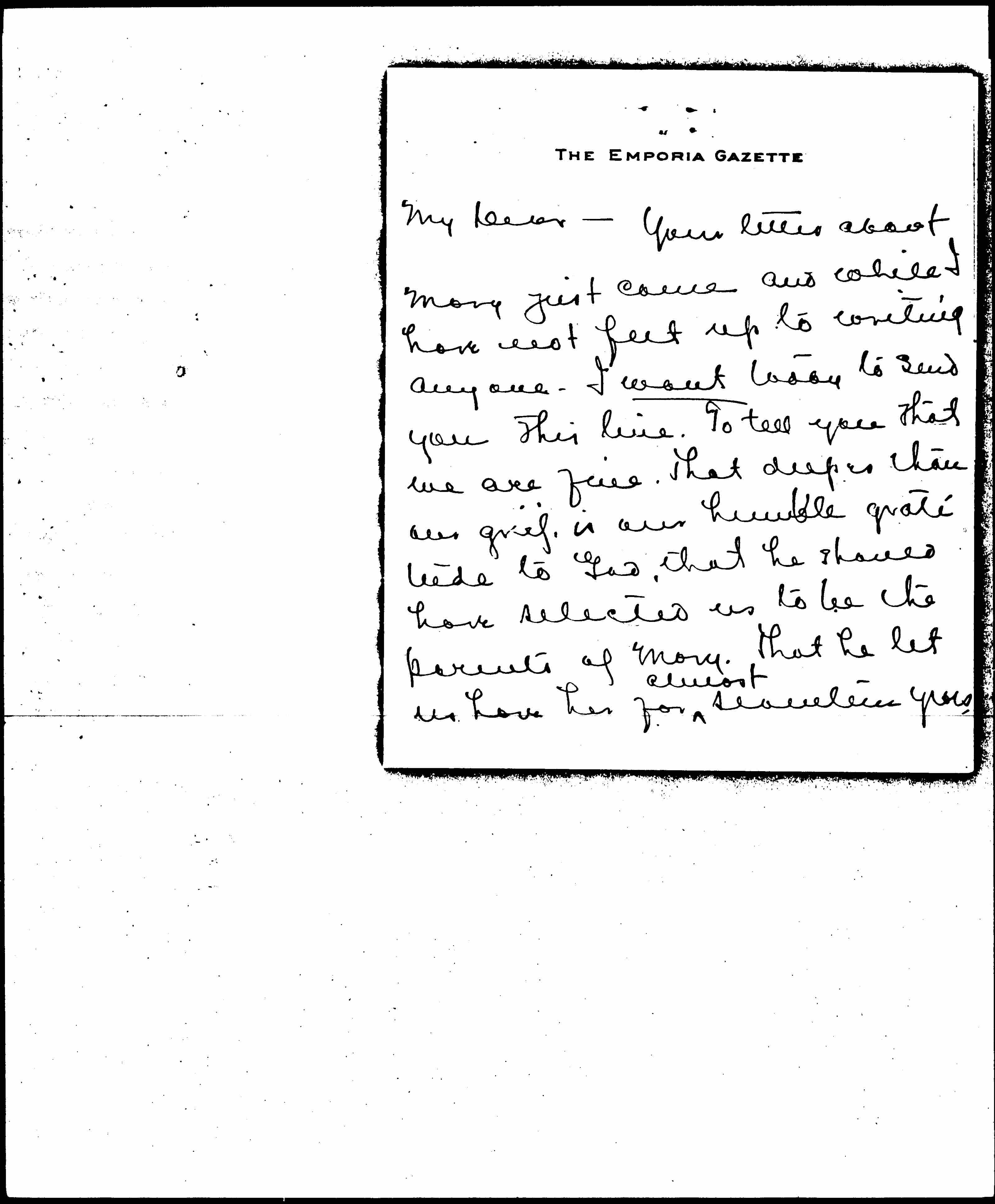 Your letter about Mary just came and while I have not felt up to writing anyone -- I want today to send you this line. To tell you that we are fine. That deeper than our grief is our humble gratitude to God, that he should have selected us to be the parents of Mary. That he let us have her for ↑almost↓