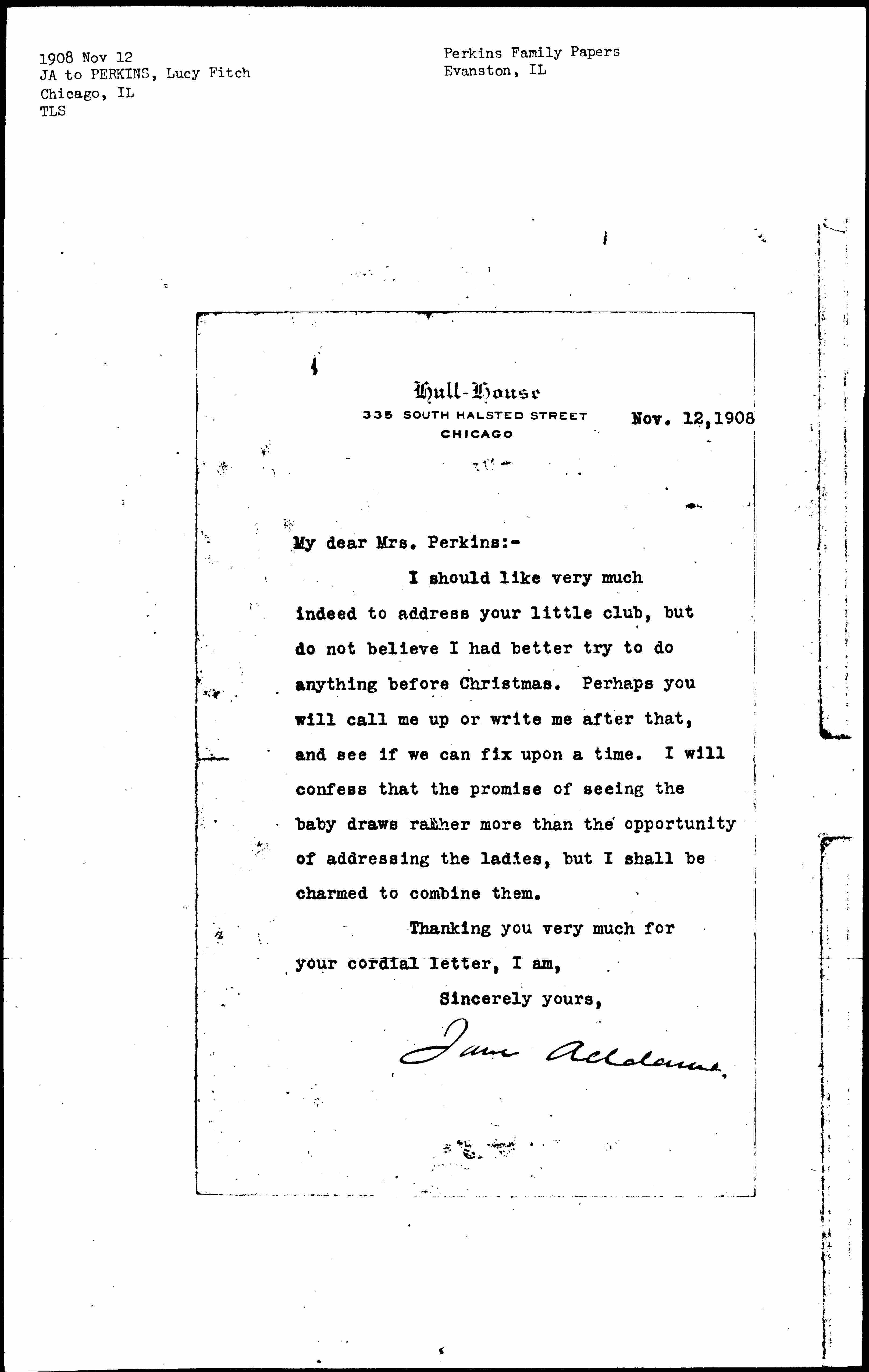 Jane Addams. [signed]