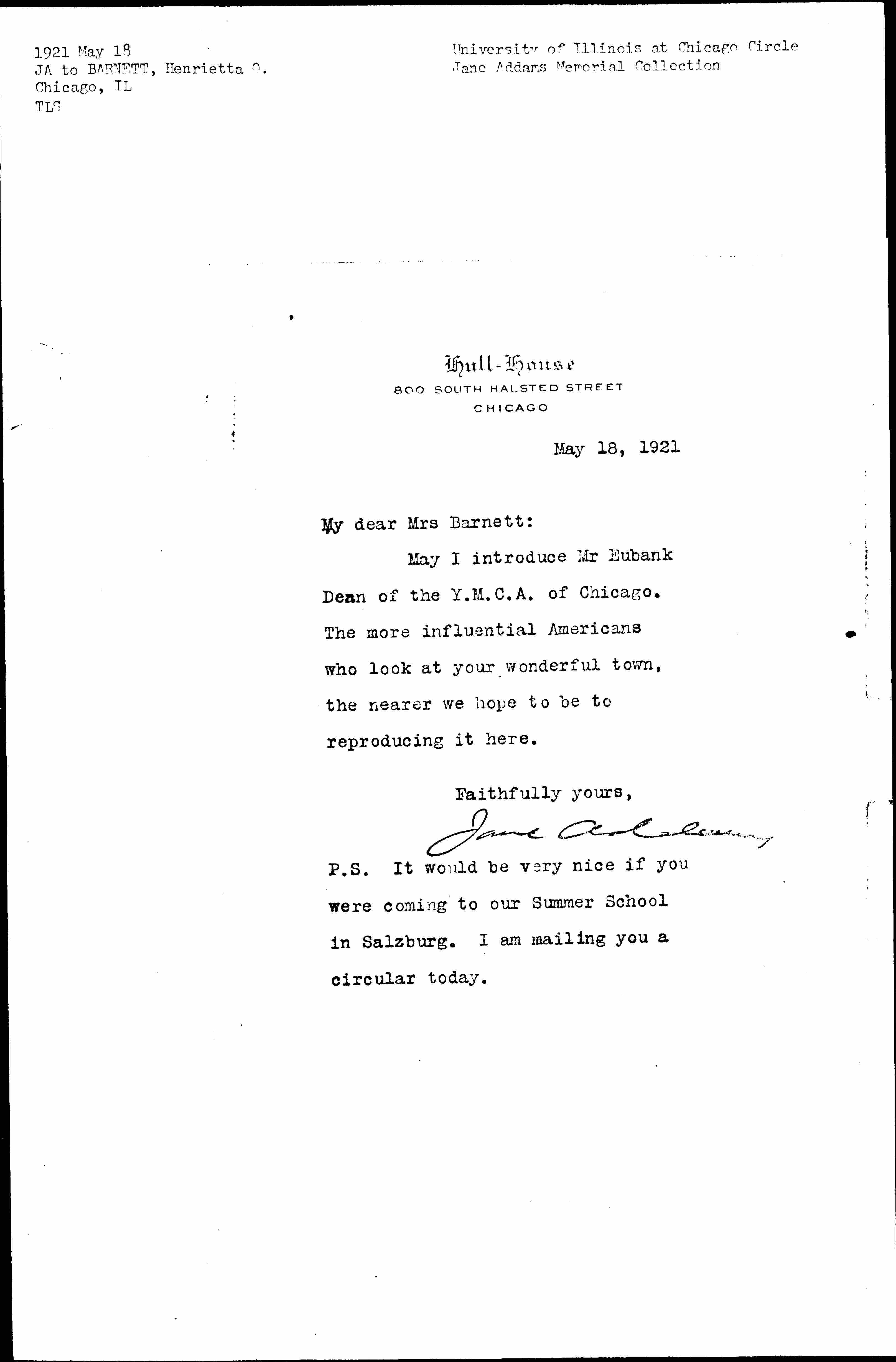 Jane Addams [signed]