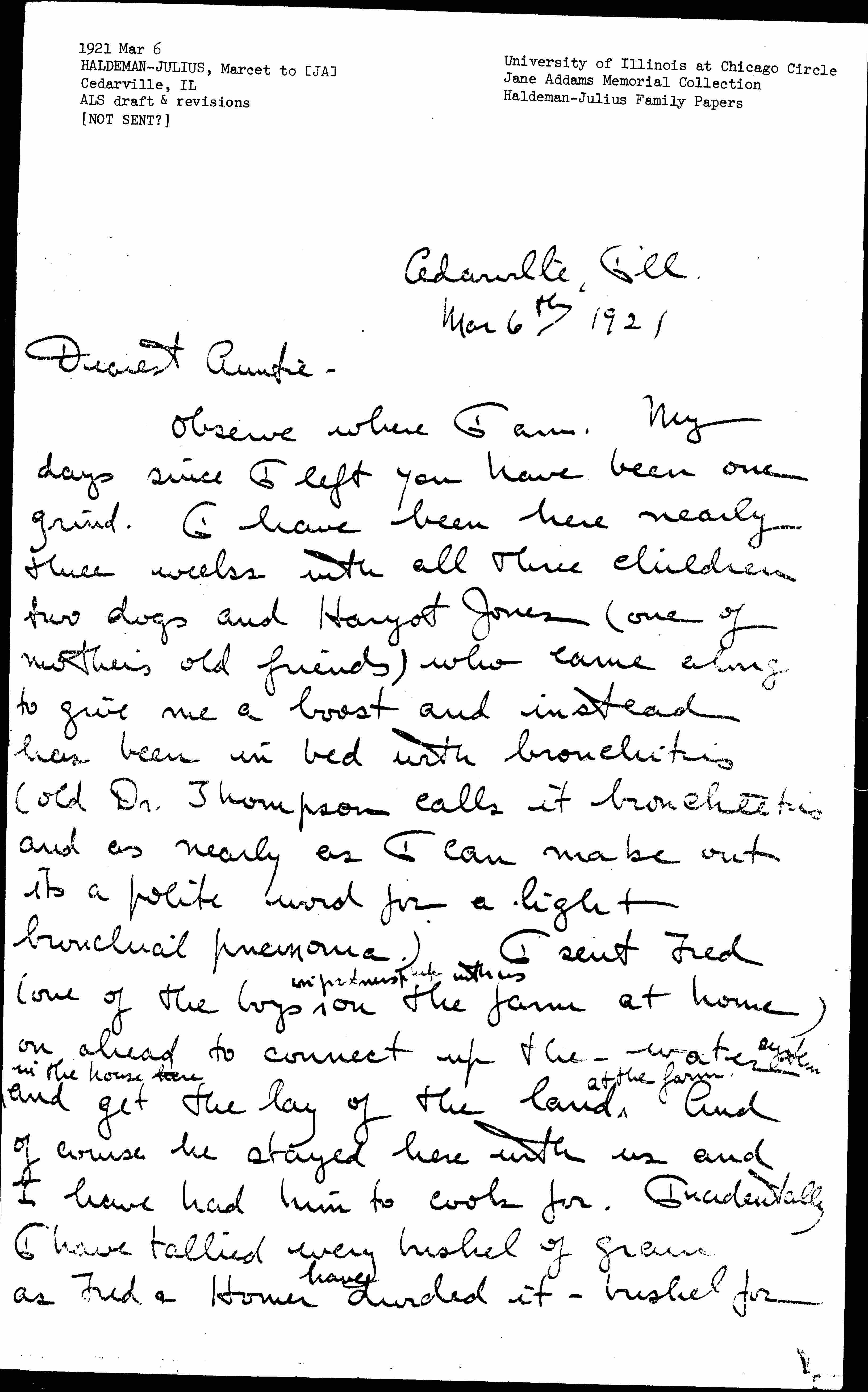 Anna Marcet Haldeman-Julius to Jane Addams, March 6, 1921