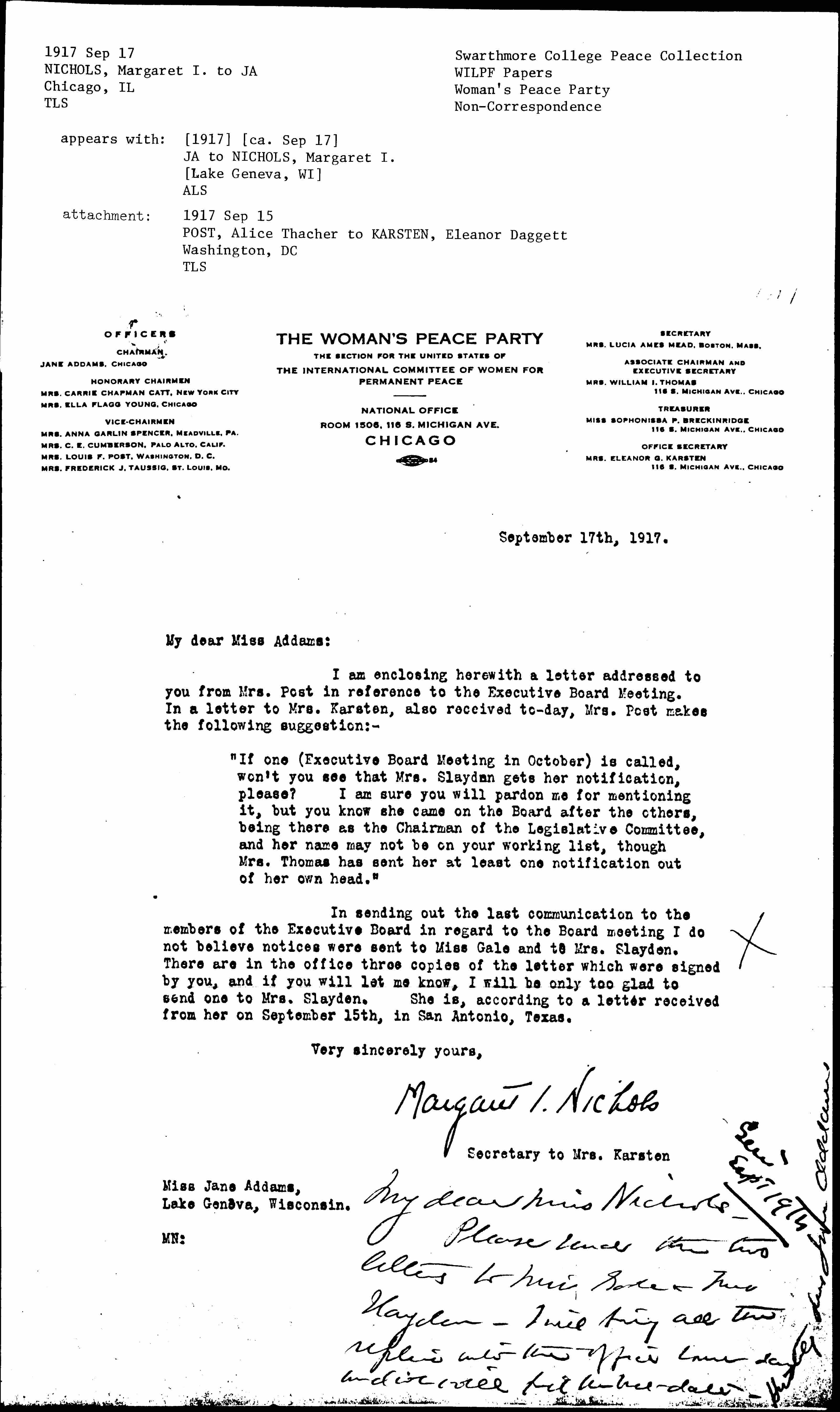 Please send the two letters to Miss Gale & Mrs Slayden. I will bring all the replies into the office same day and we will [find] the best date.