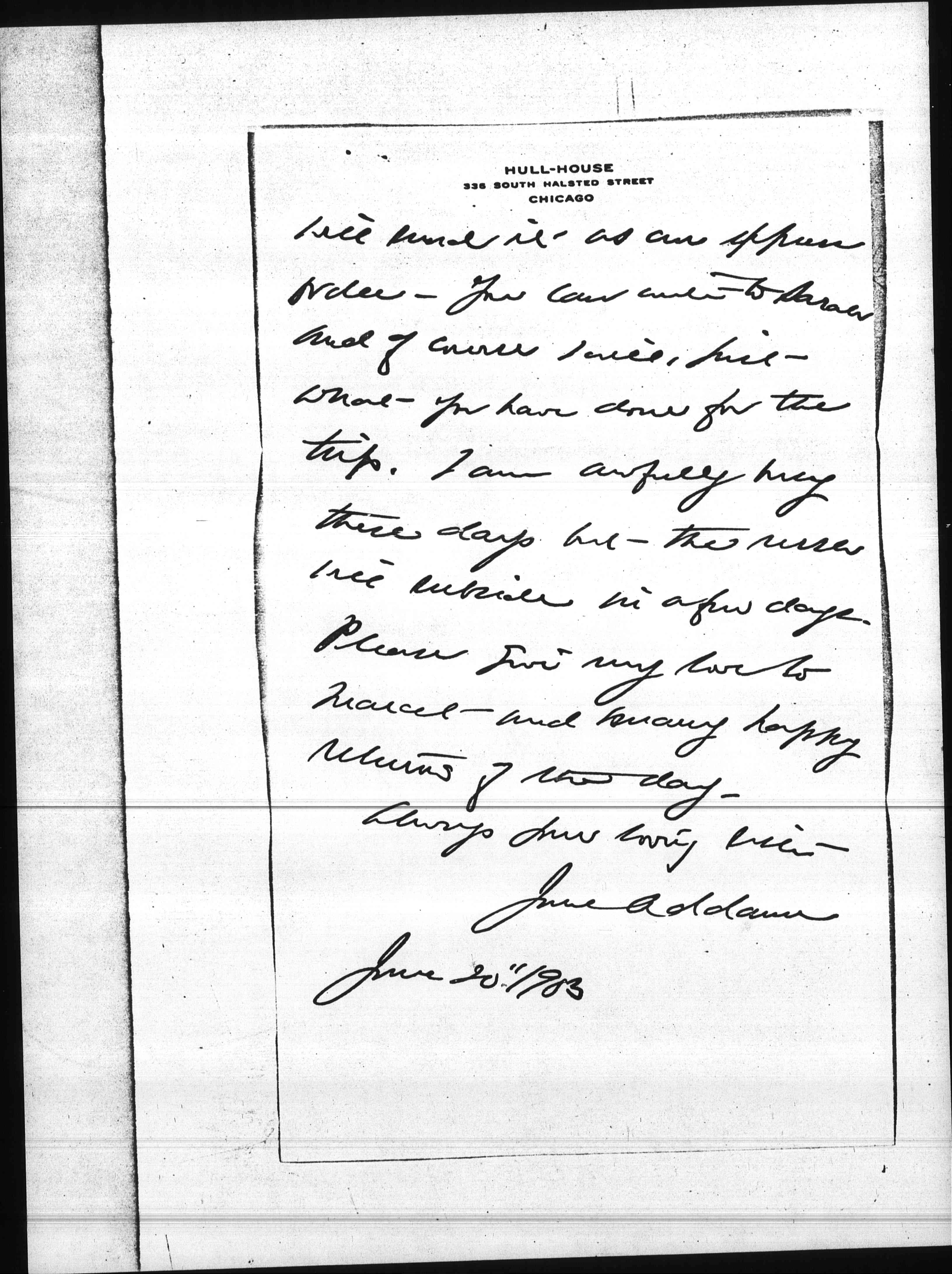 I should think that the one hundred should be sent to me, and the twenty five to Laura who [page 2] will send it as an express order. You can write to Sarah and of course I will, just what you have done for the trip. I am awfully busy these days but the rush will subside in a few days. Please give my love to Marcet and many happy returns of the day.