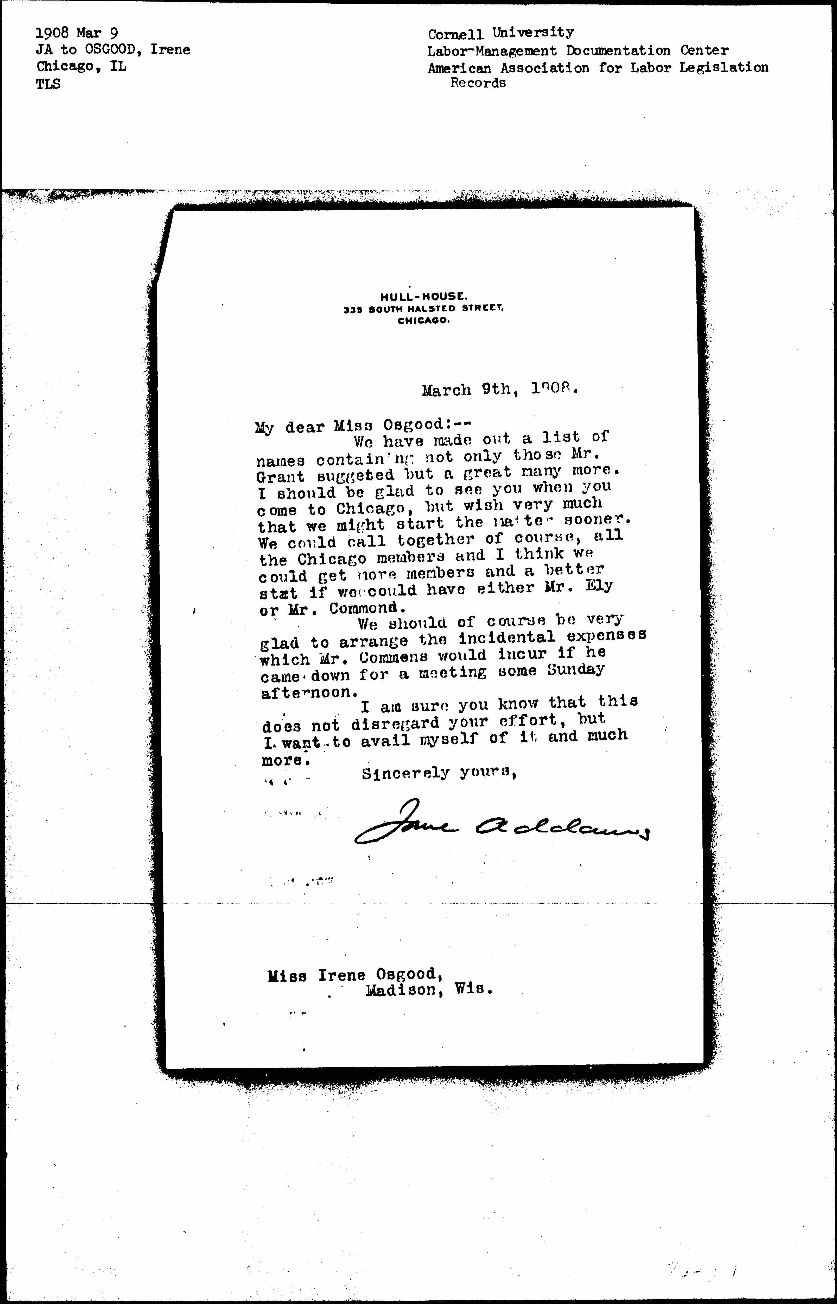 Jane Addams [signed]
