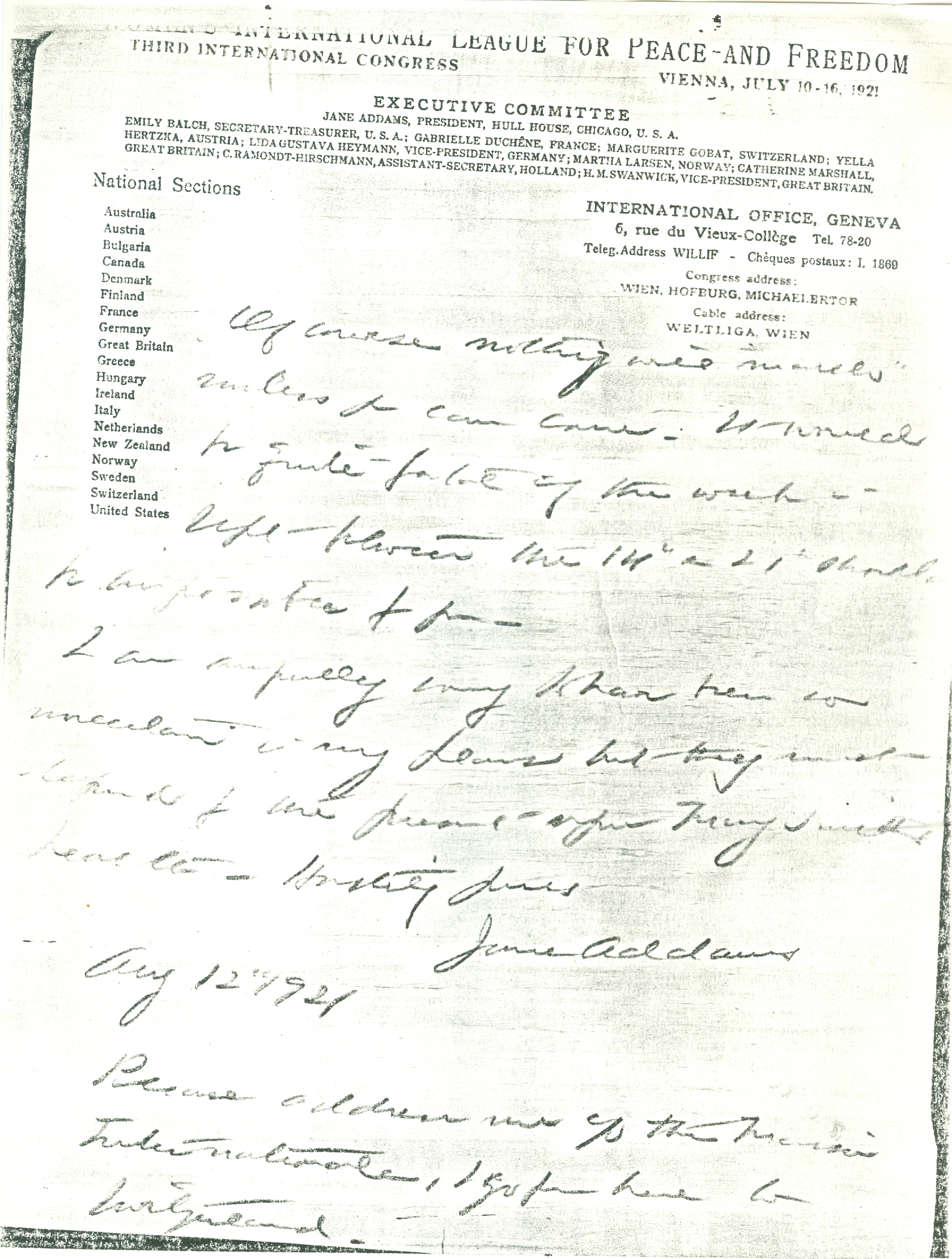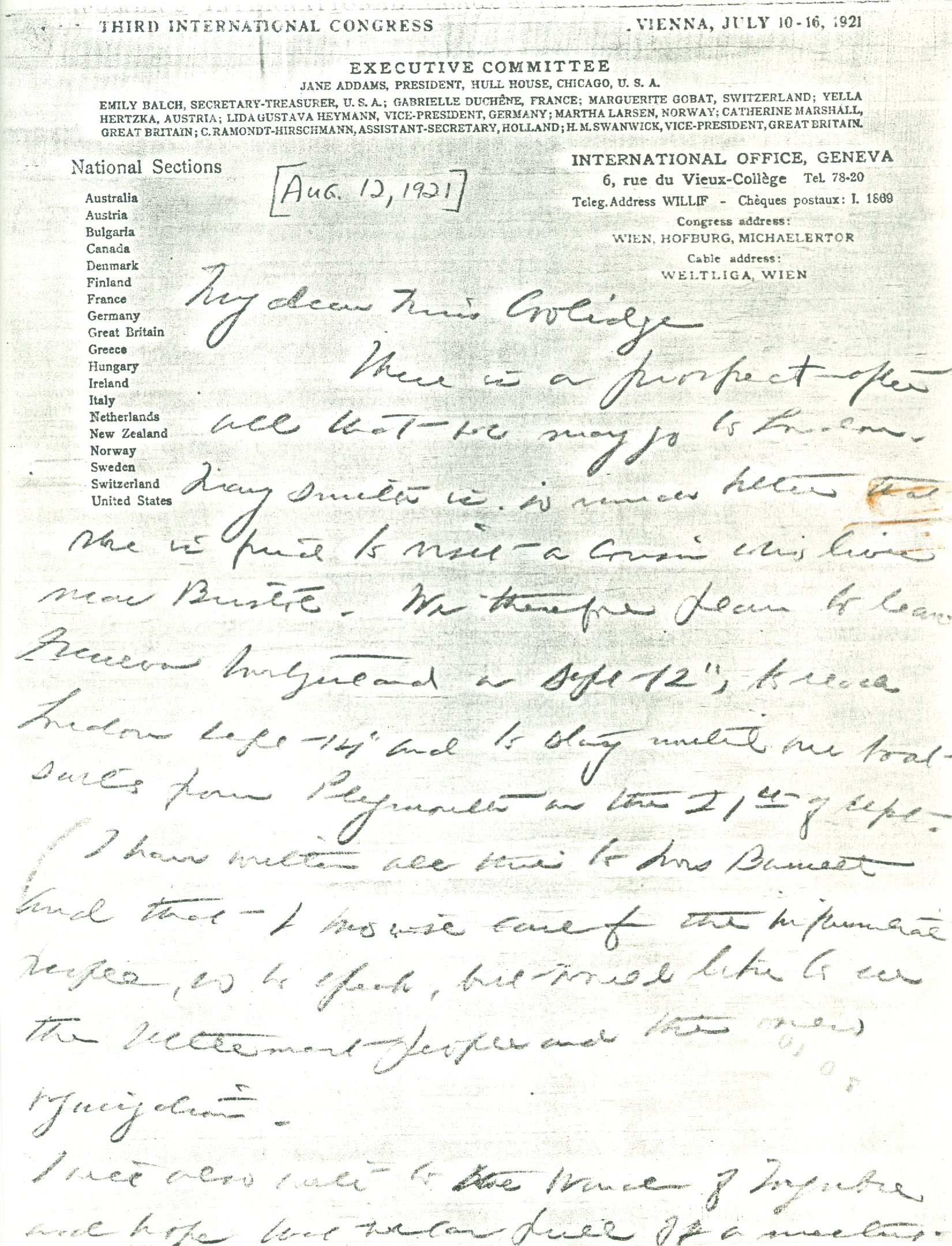 Please address me c/o the Maison Internationale, I go from here to Switzerland.