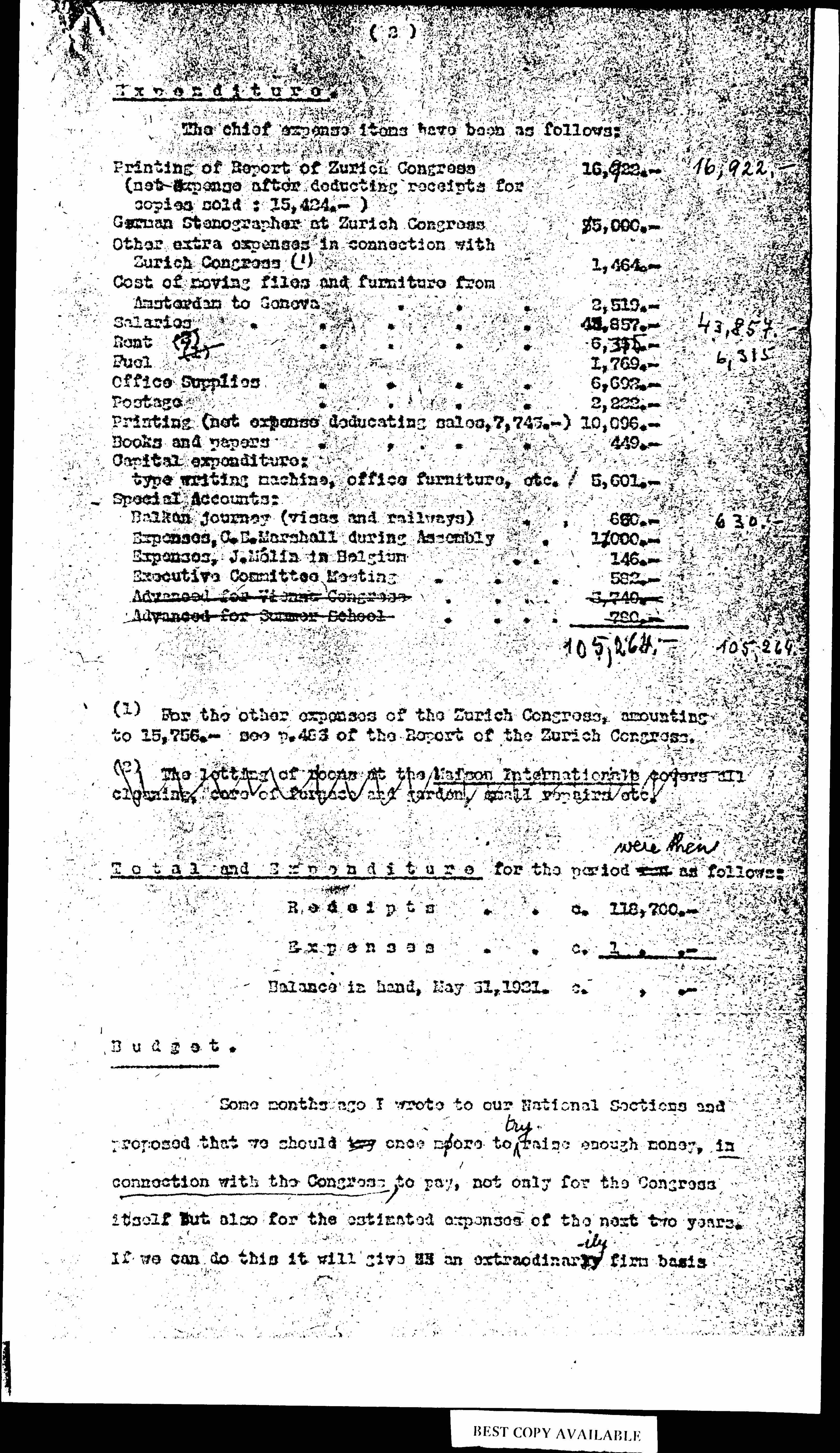 | Vienna Congress & Support in period [1921-2] | 5,000. | ↑3,422.↓ 8,422. |
