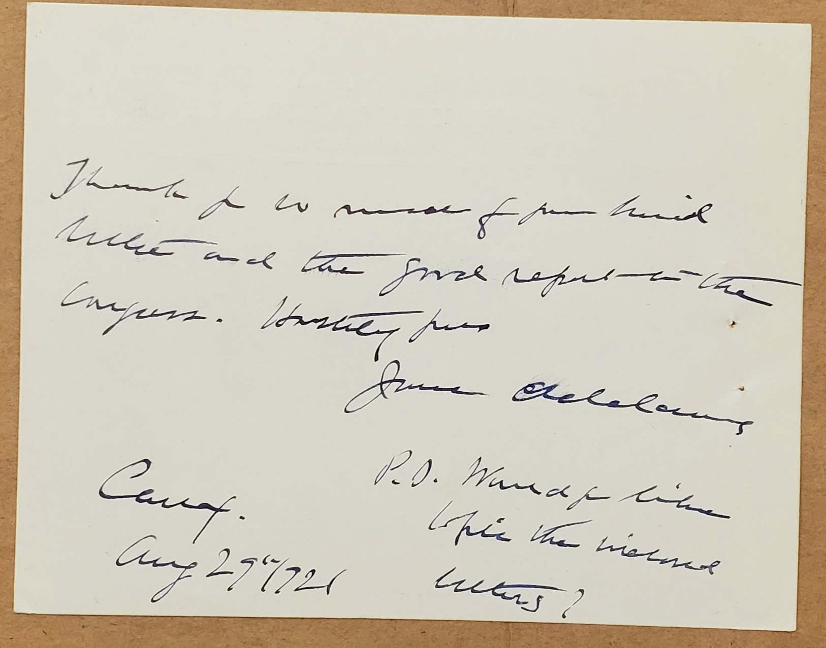 Caux. Aug 29" 1921