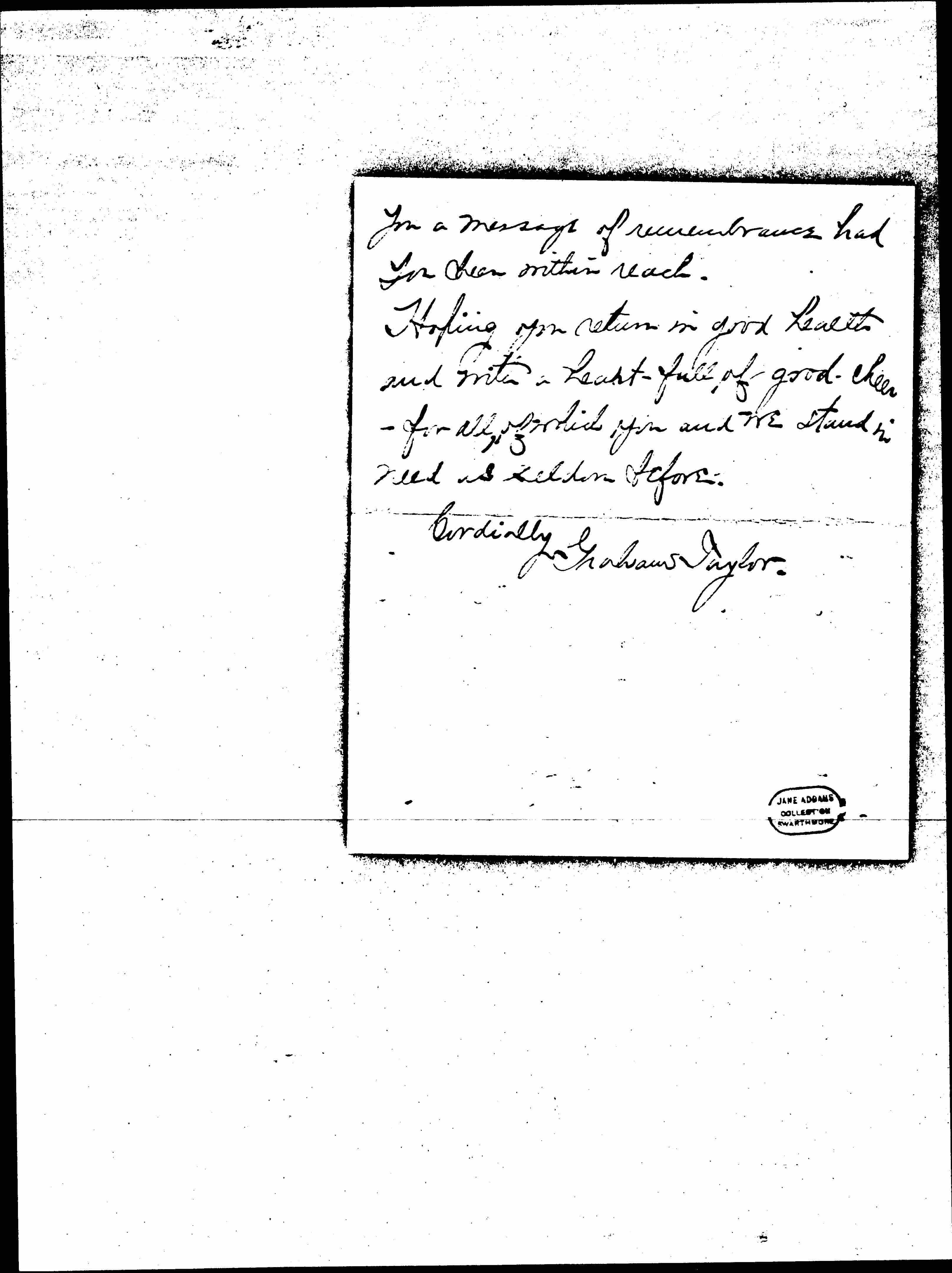 It must have cheered your heart so much to be in the freer atmosphere of the very "elect" from so many peoples, and, for a while, to be out from under the atmospheric pressure, the weight of which upon us all lightens so slowly. Sept 6, I bore your birthday in mind and would have mailed or wired [page 2] you a message of remembrance had you been within reach.