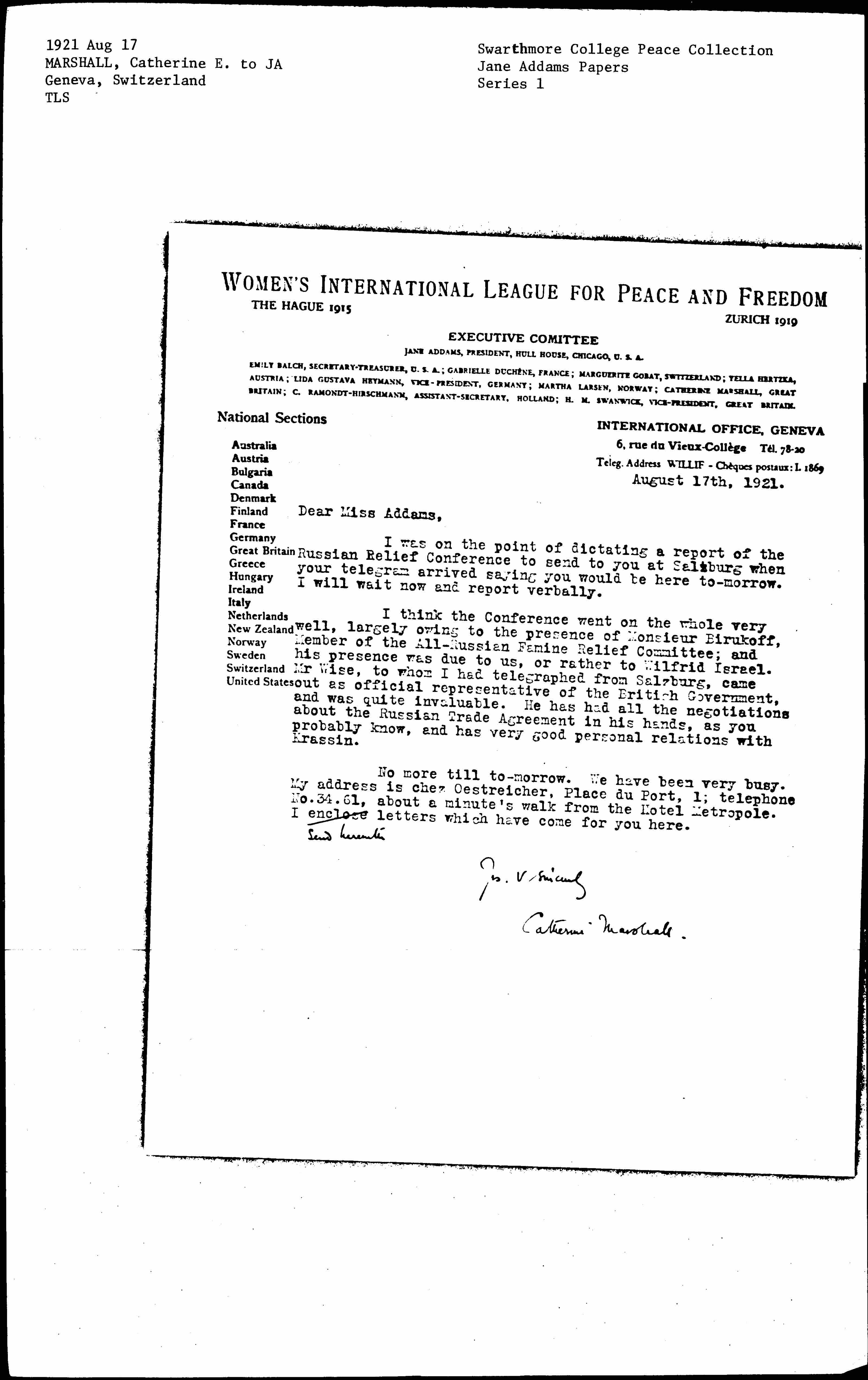 I think the Conference went on the whole very well, largely owing to the presence of Monsieur Birukoff, Member of the All-Russian Famine Relief Committee; and his presence was due to us, or rather to [Wilfred] Israel. Mr Wise, to whom I had telegraphed from Salzburg, came and was quite invaluable. He has had all the negotiations about the Russian Trade Agreement in his hands, as you probably know, and has very good personal relations with [Krasin].