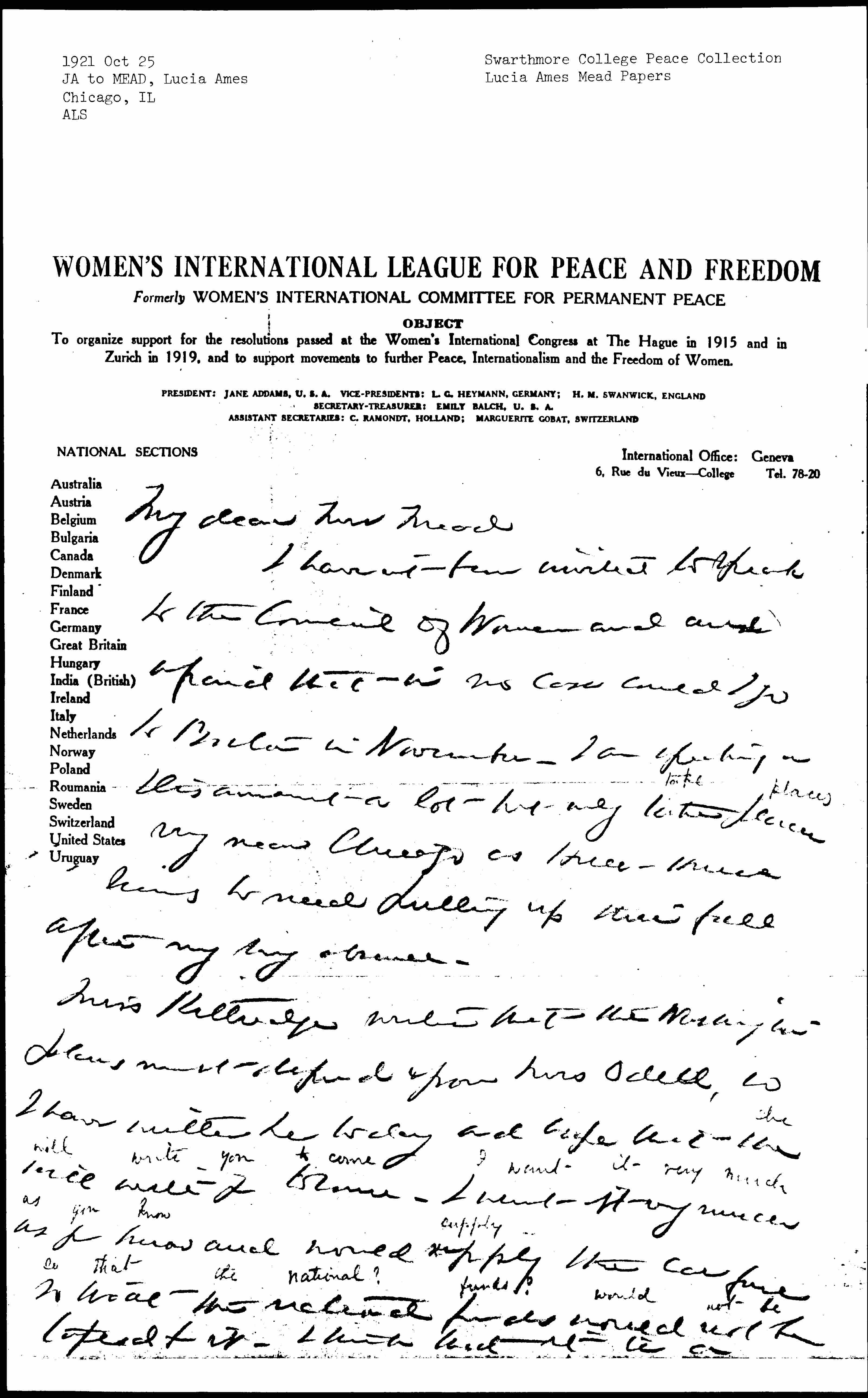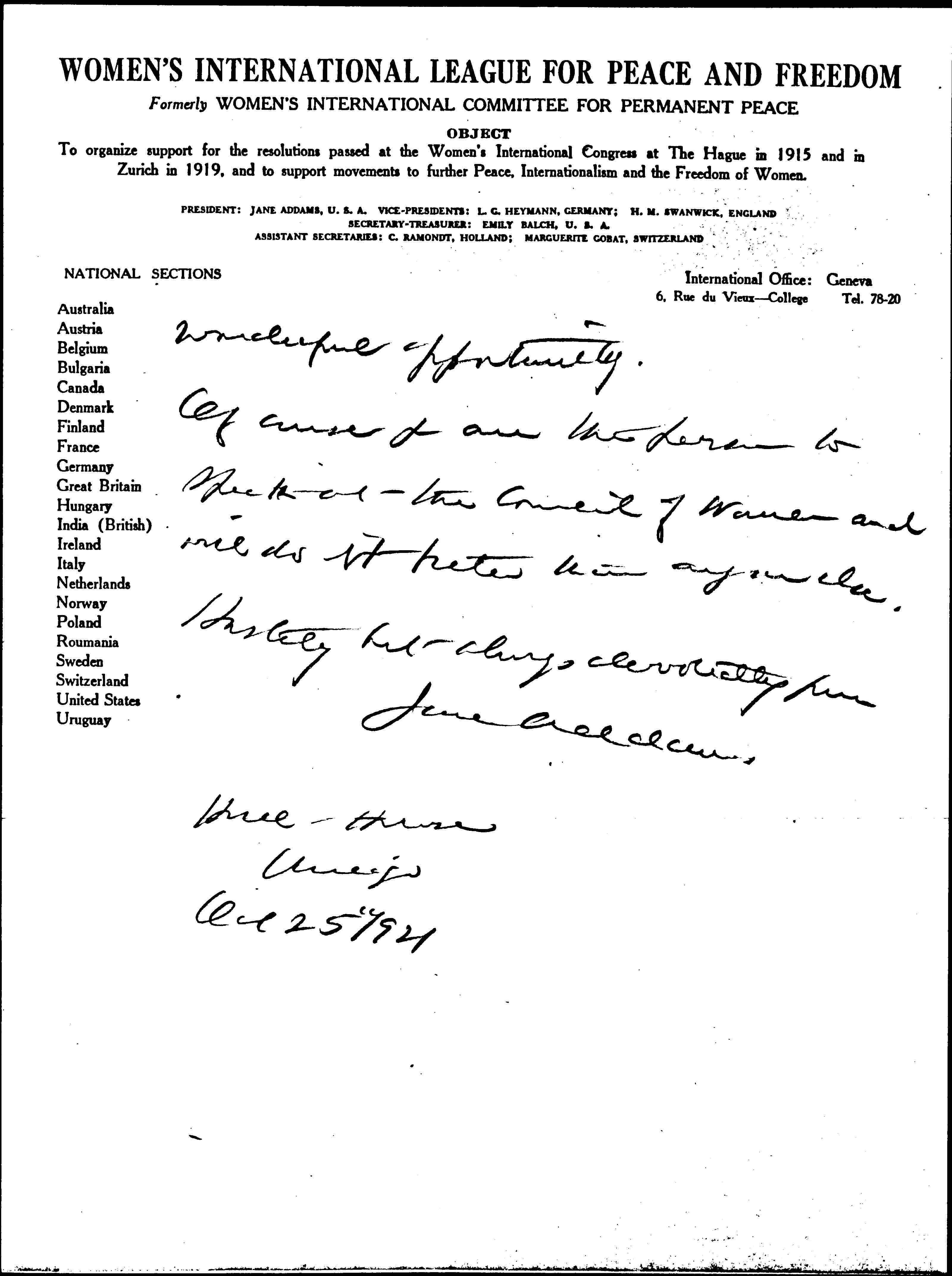 I haven't been invited to speak to the Council of Women and am afraid that in no case could I go to Boston in November. I am speaking on Disarmament a lot but only take places very near Chicago as Hull-House seems to need pulling up [this fall] after my long absence.