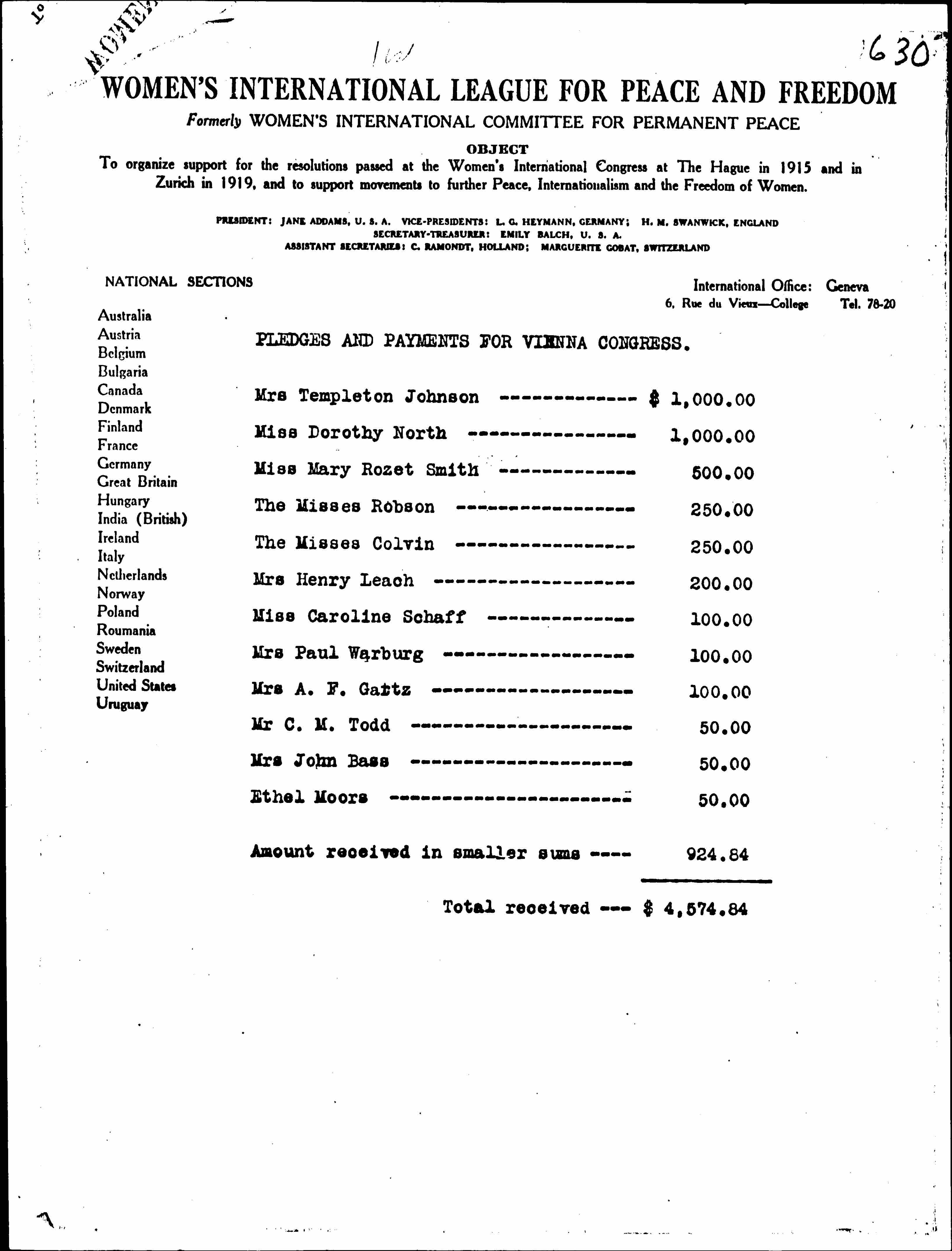 | Mrs Paul Warburg | 100.00 |