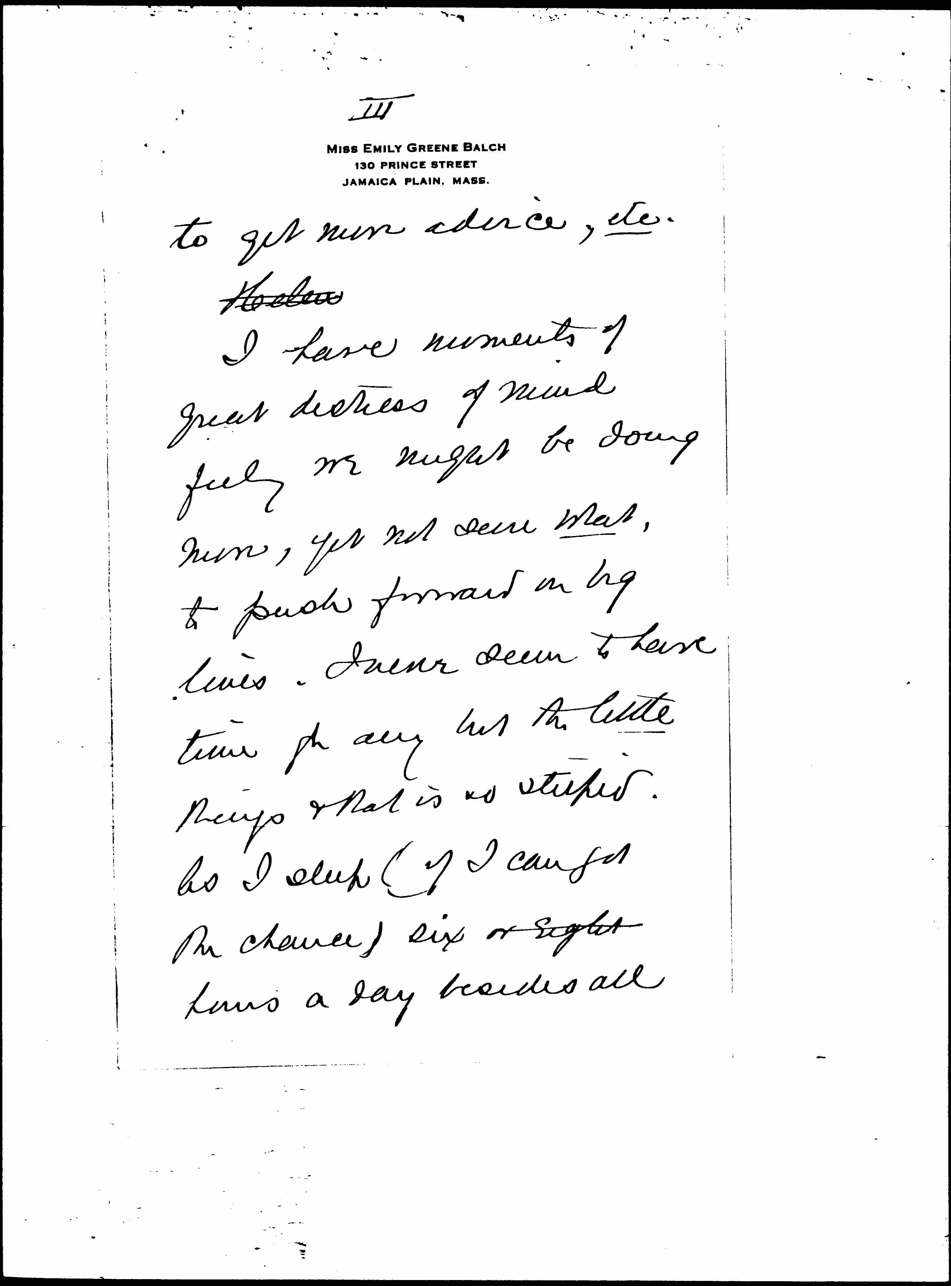 Miss Nichols has given me some information which does not look hopeful for [page 8] the recovery of Miss [illegible]'s $300. She Miss Cheever will forward the paragraph to you.