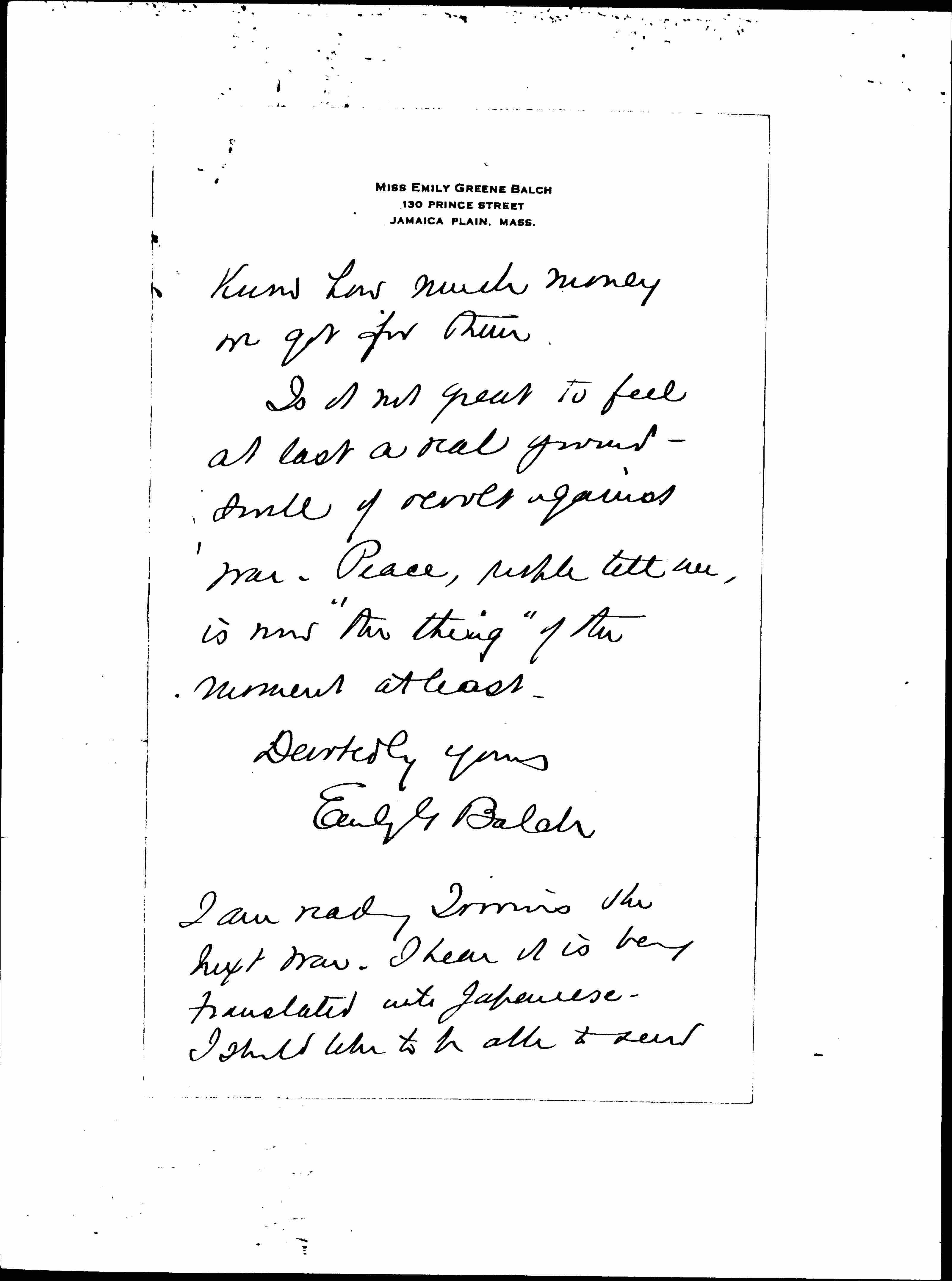 I am reading Irwin's the Next War. I hear it is being translated into Japanese. I should like to be able to send [page 12] a copy to each of our sections & ask them to try to get it read or if practical translated.